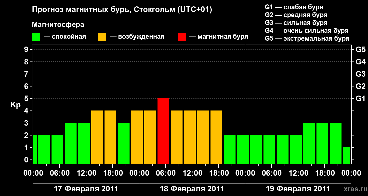 Прогноз магнитных бурь в Стокгольме — 17 февраля 2011 года