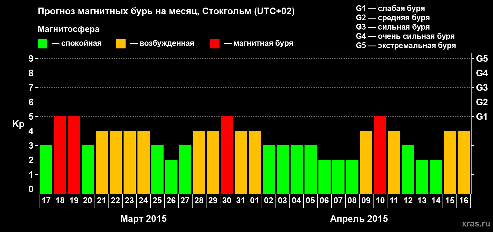 Прогноз магнитных бурь в Стокгольме — 17 марта 2015 года