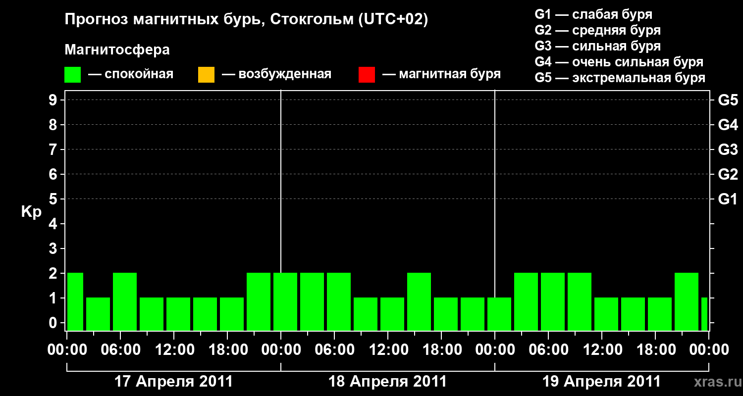 Прогноз магнитных бурь в Стокгольме — 17 апреля 2011 года