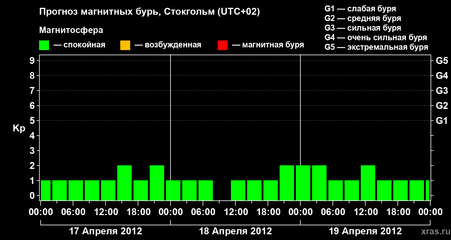 Прогноз магнитных бурь в Стокгольме — 17 апреля 2012 года