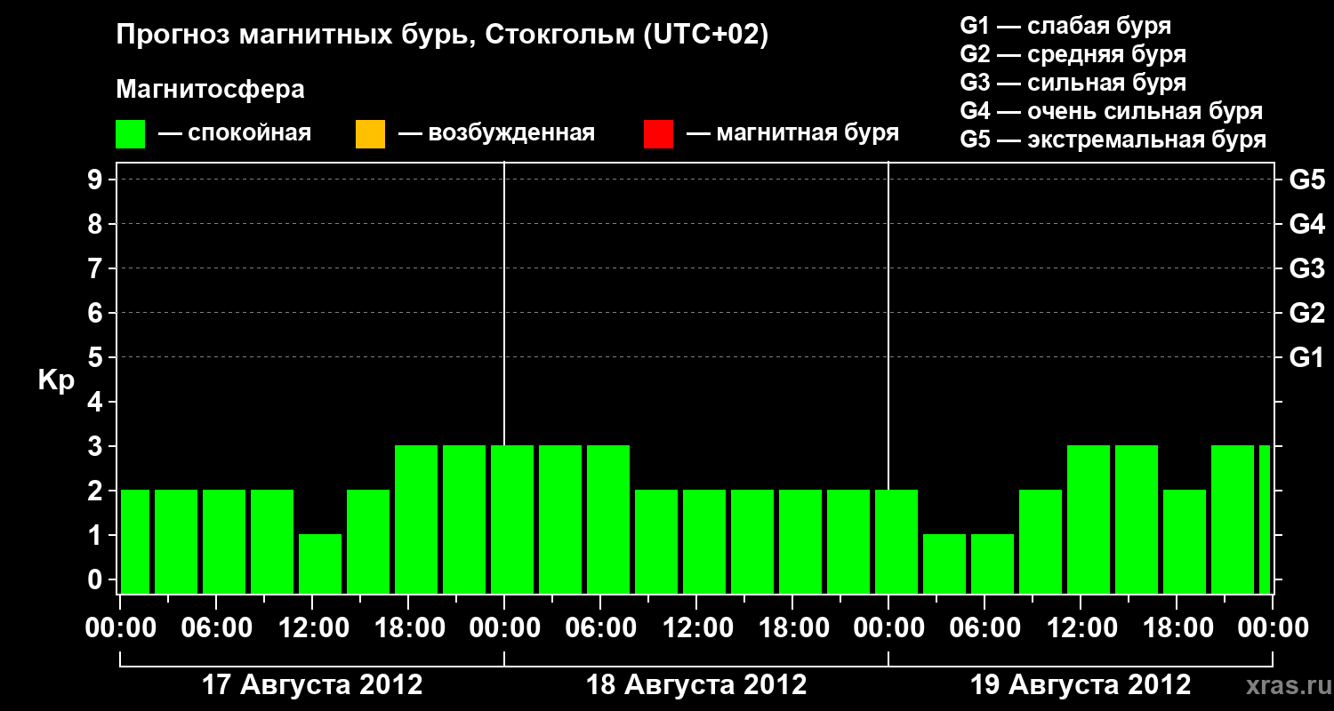 Прогноз магнитных бурь в Стокгольме — 17 августа 2012 года
