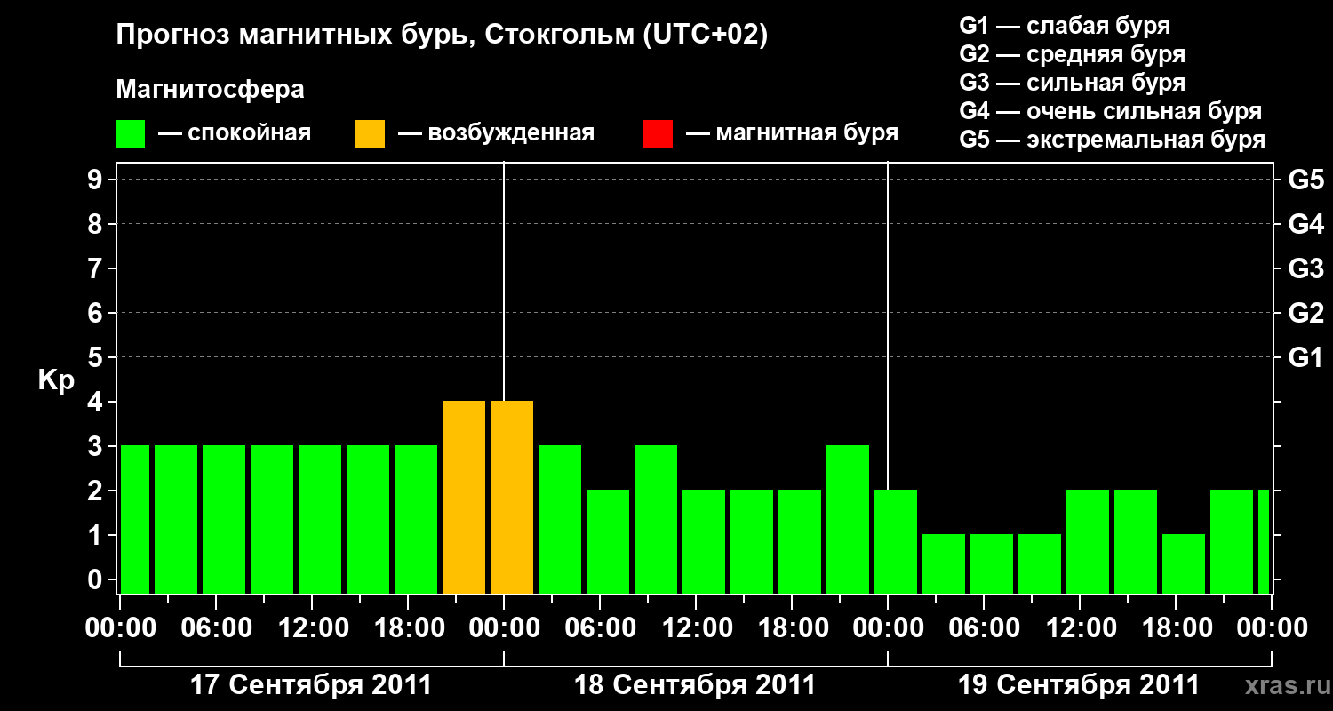 Прогноз магнитных бурь в Стокгольме — 17 сентября 2011 года