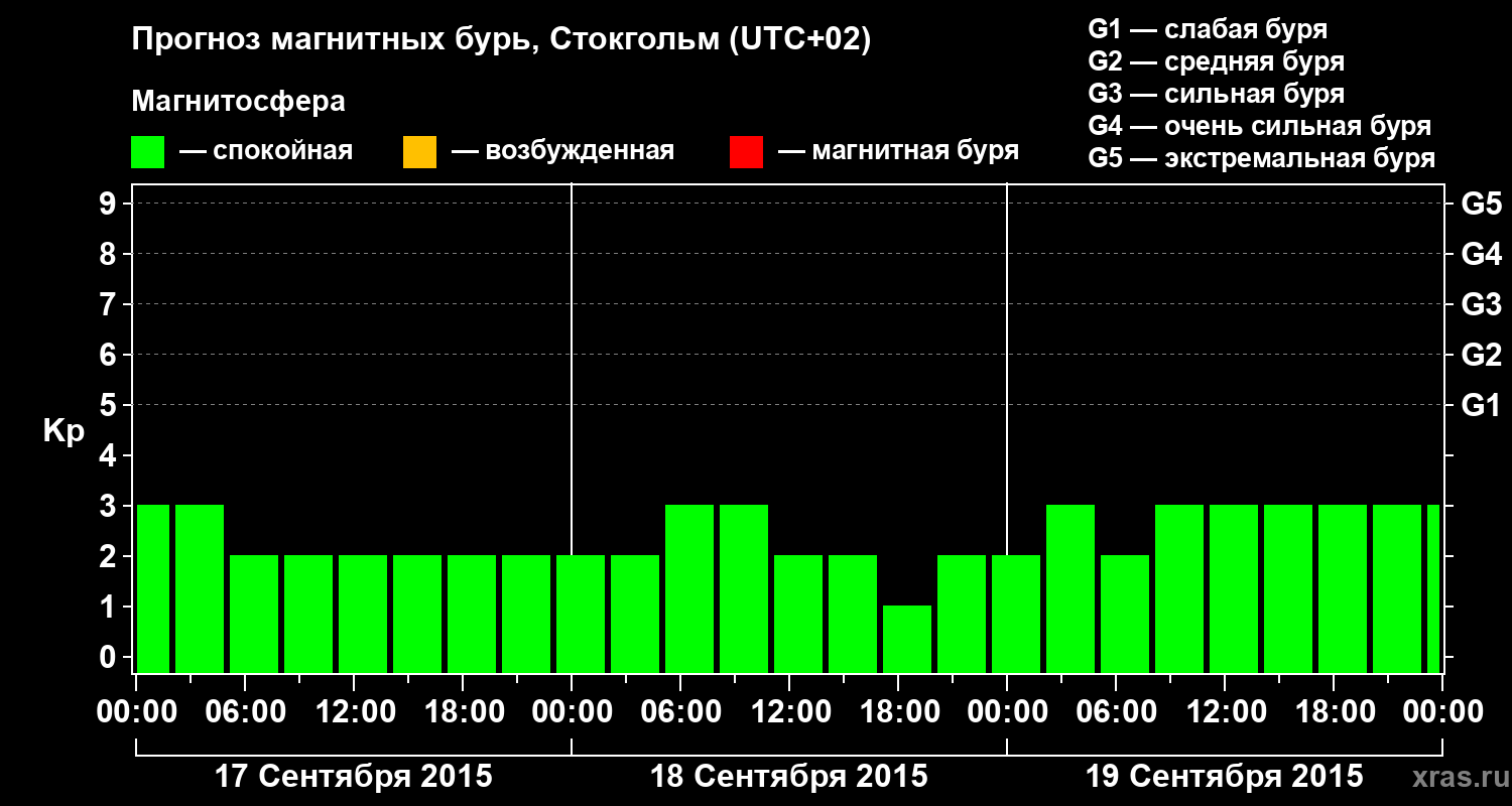 Прогноз магнитных бурь в Стокгольме — 17 сентября 2015 года