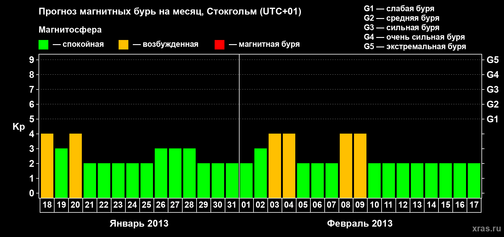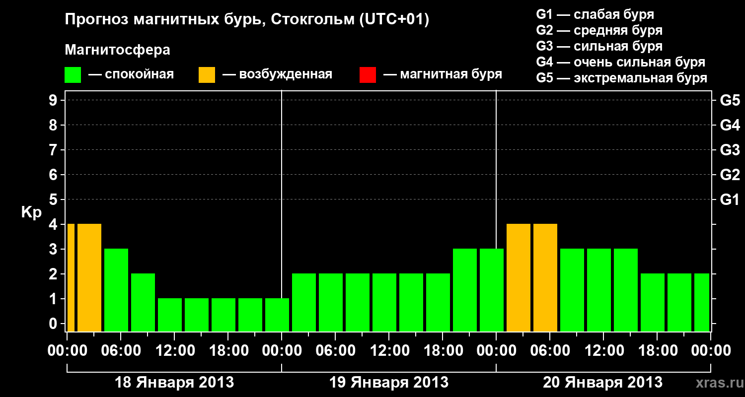 Прогноз магнитных бурь в Стокгольме — 18 января 2013 года