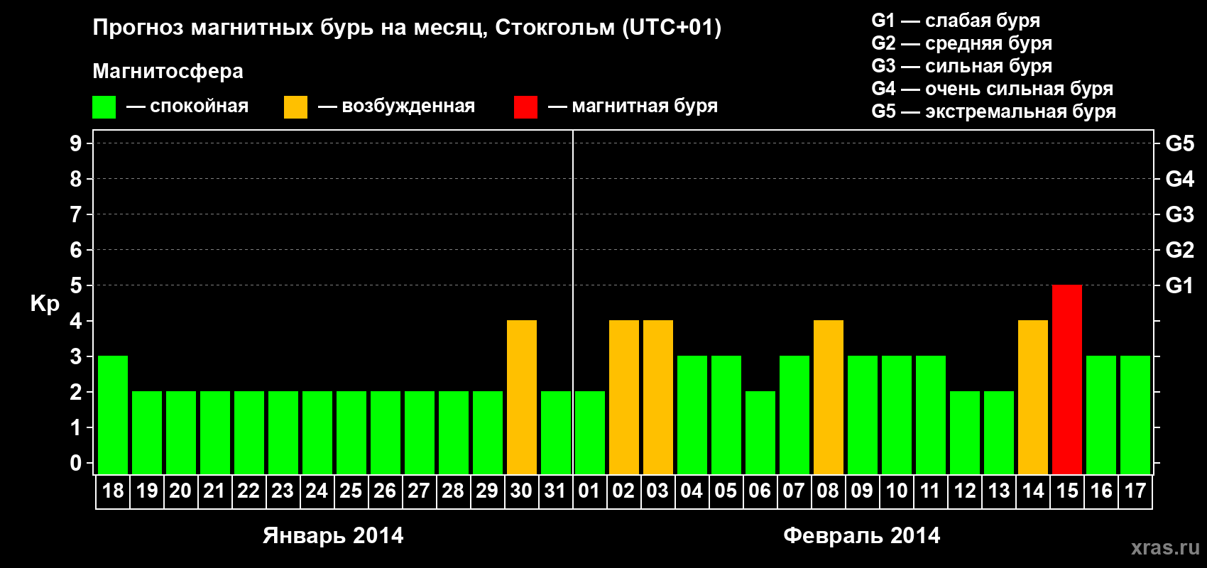 Прогноз магнитных бурь в Стокгольме — 18 января 2014 года