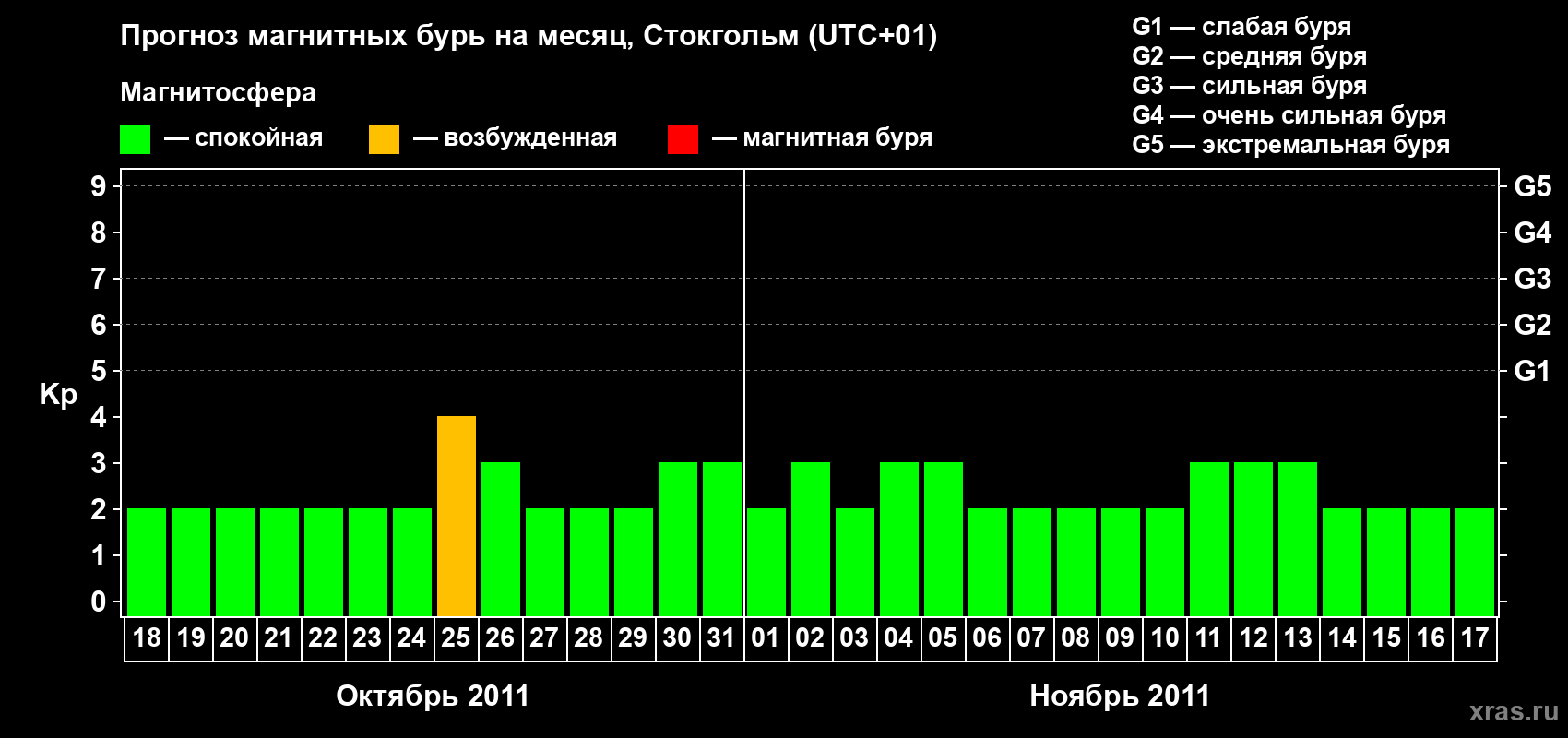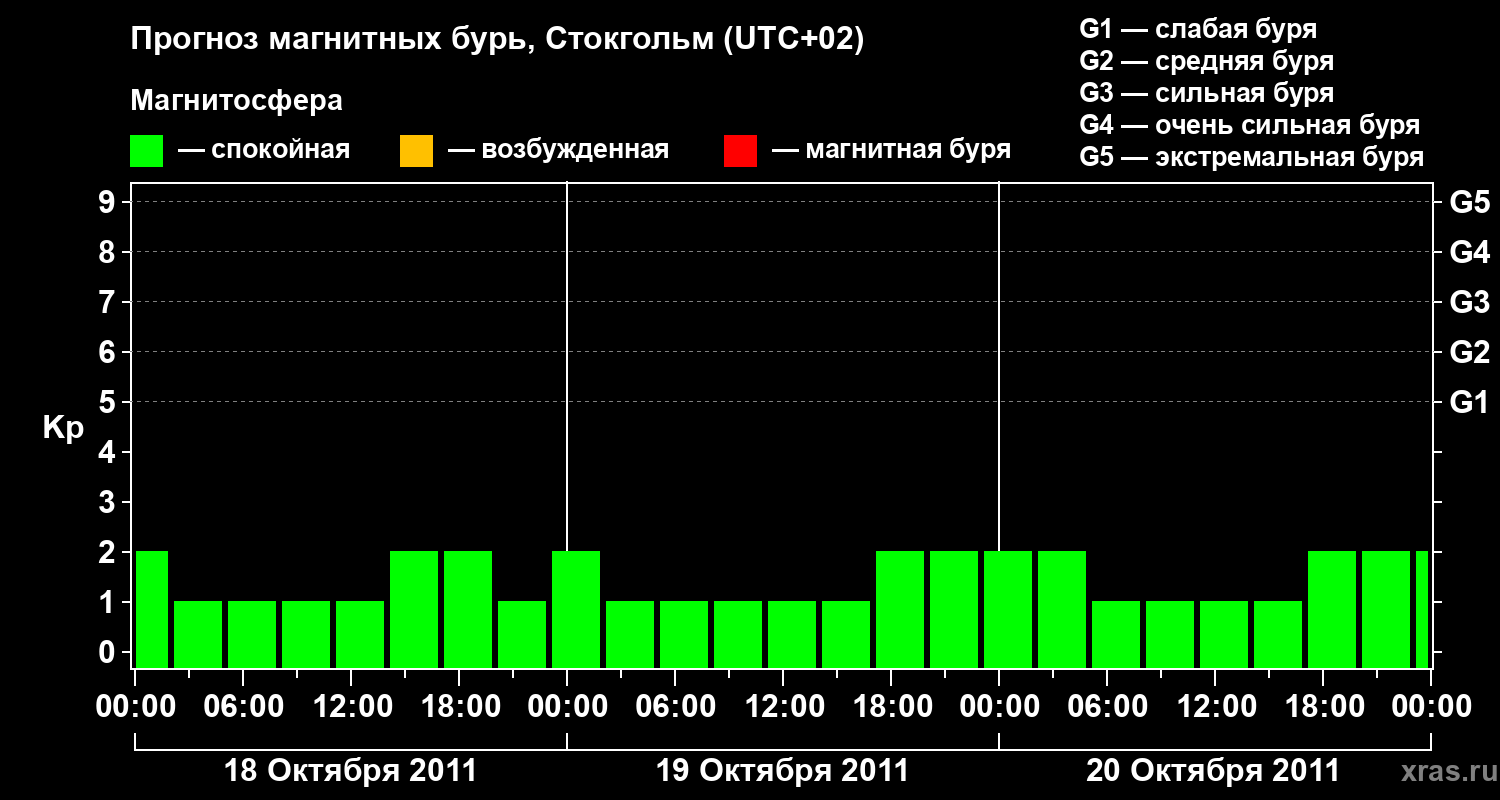 Прогноз магнитных бурь в Стокгольме — 18 октября 2011 года