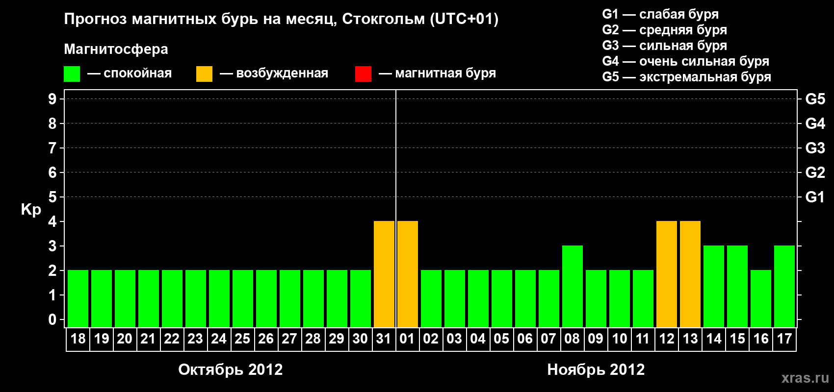 Прогноз магнитных бурь в Стокгольме — 18 октября 2012 года