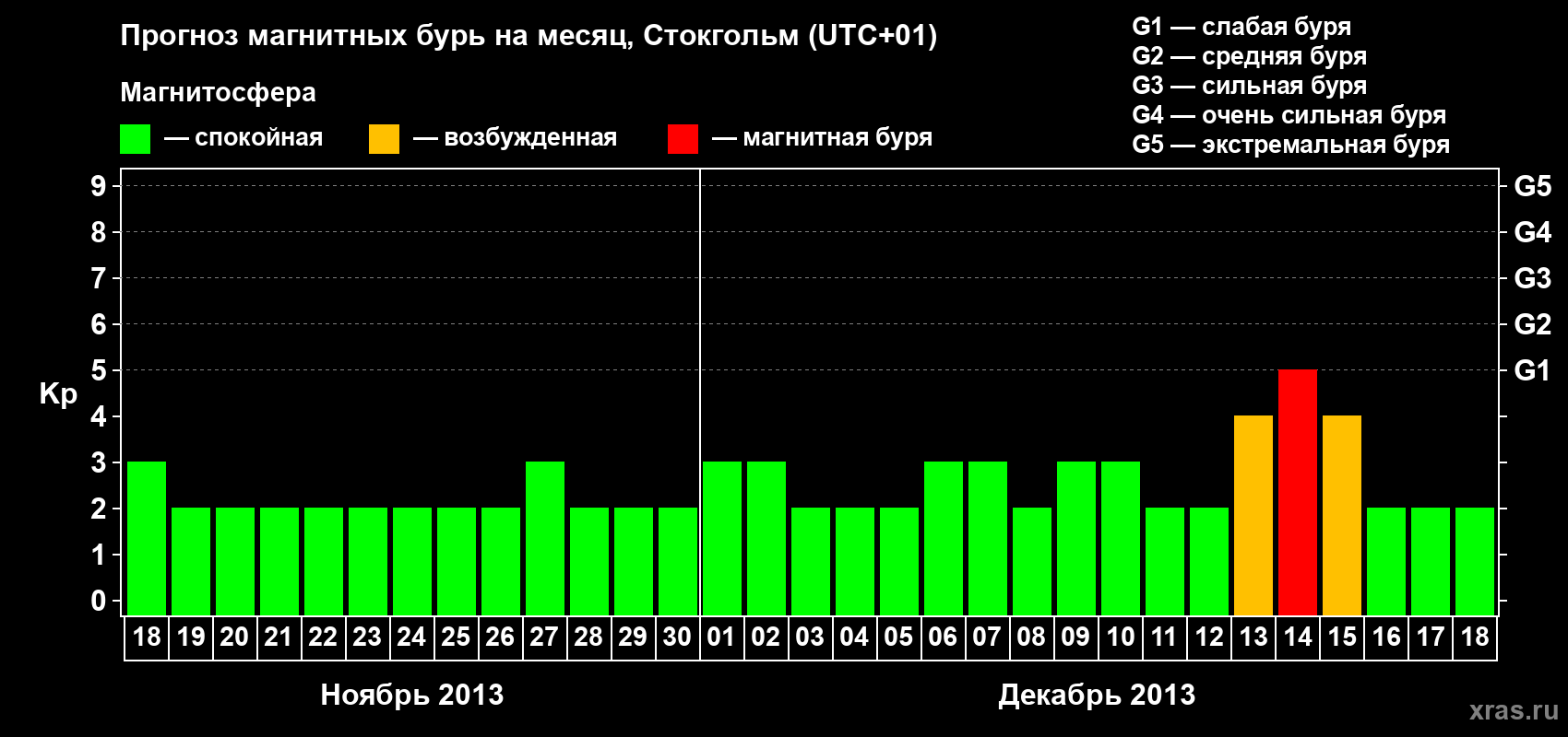 Прогноз магнитных бурь в Стокгольме — 18 ноября 2013 года
