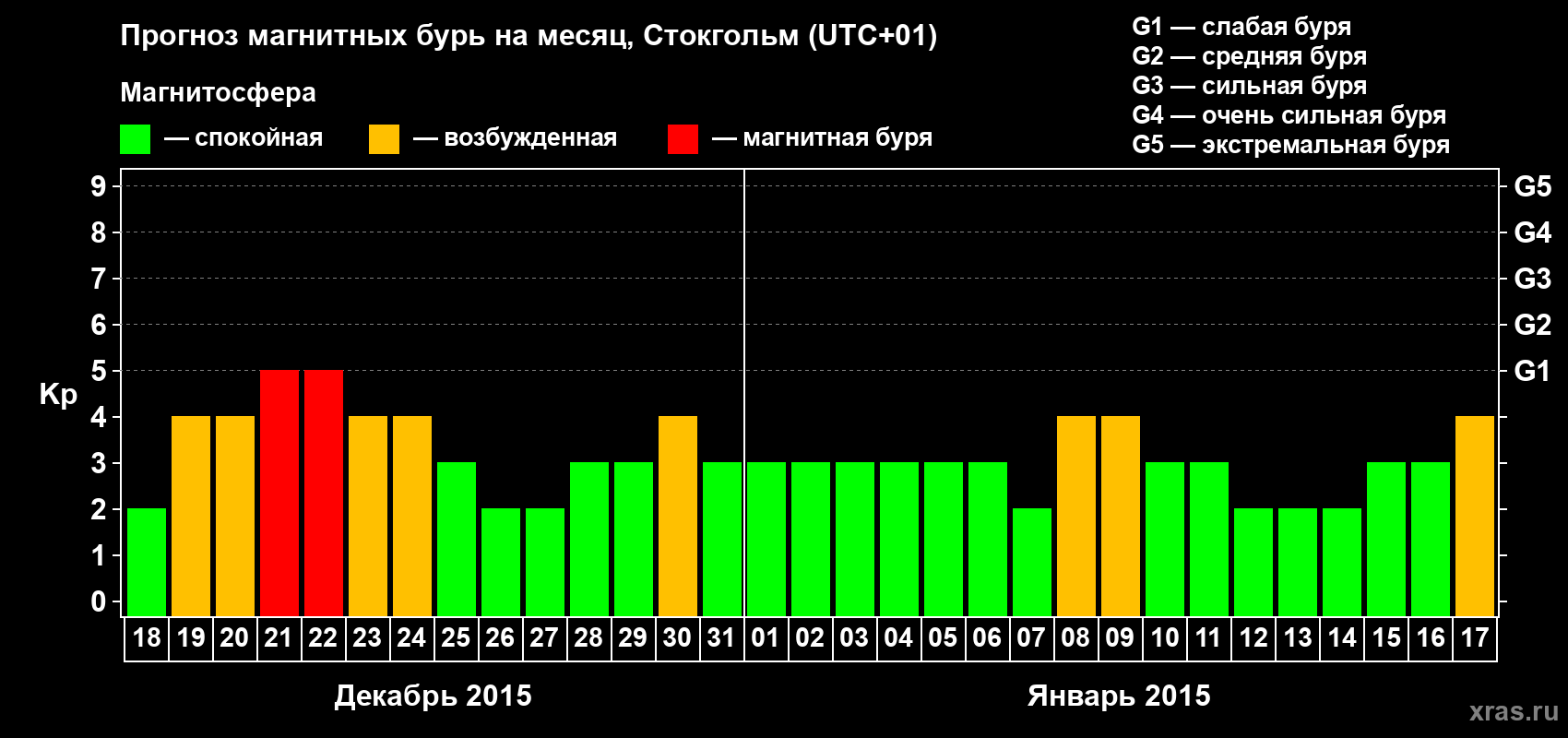 Прогноз магнитных бурь в Стокгольме — 18 декабря 2014 года