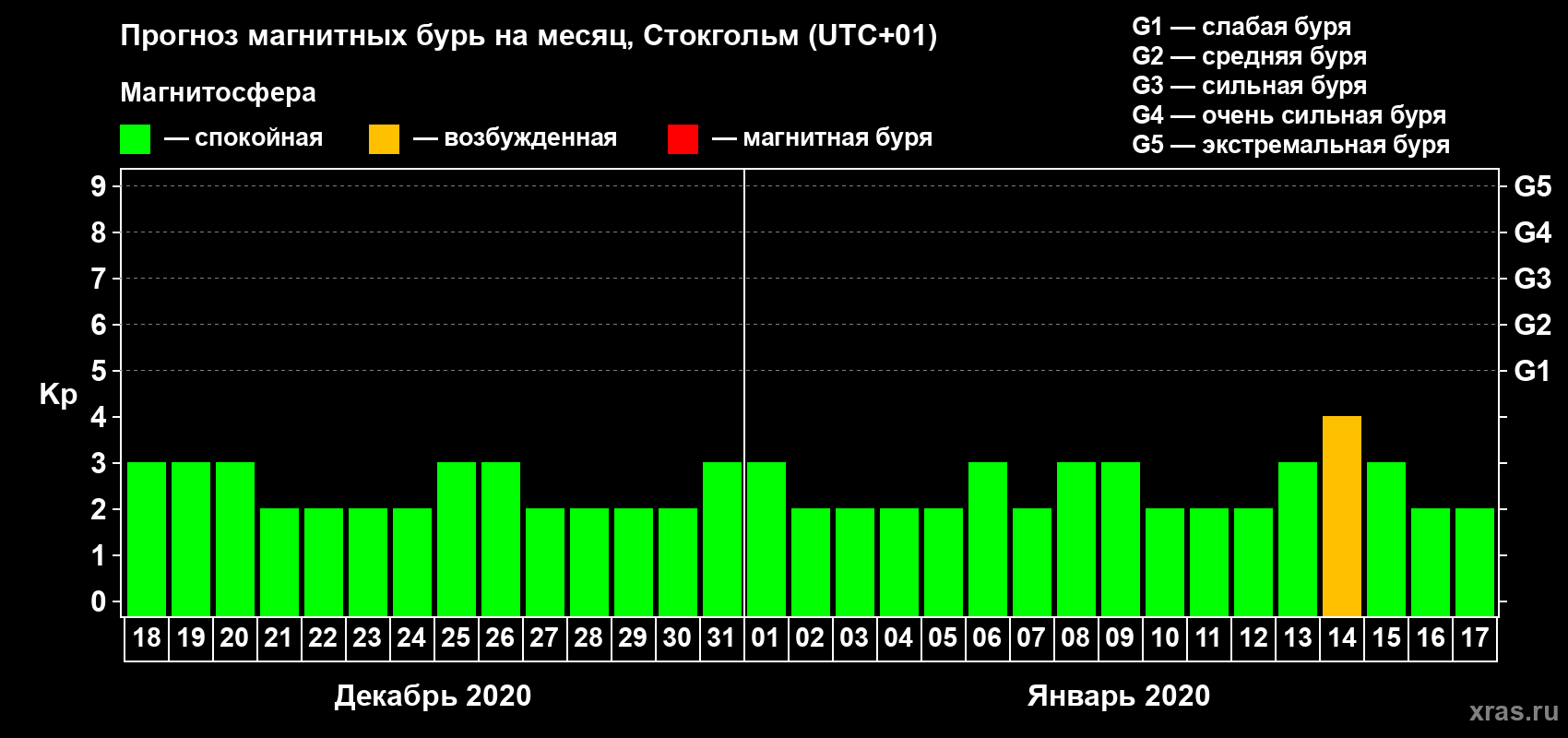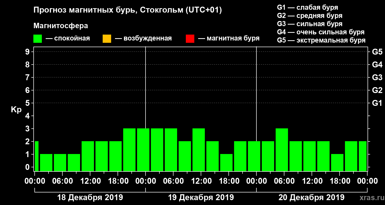 Прогноз магнитных бурь в Стокгольме — 18 декабря 2019 года