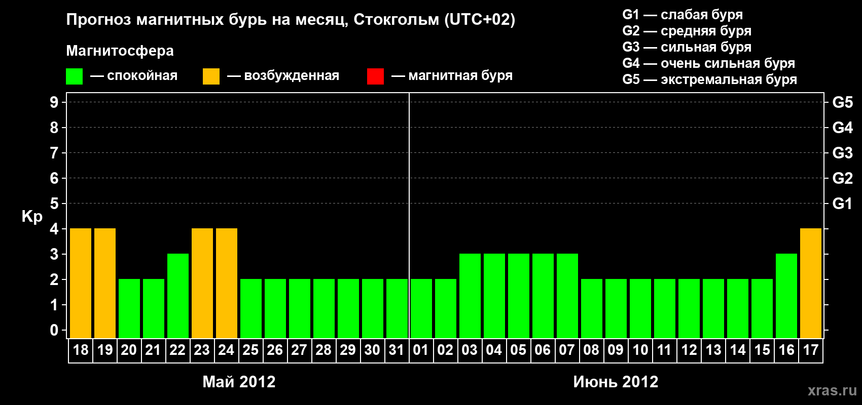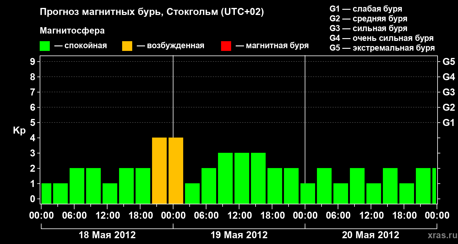 Прогноз магнитных бурь в Стокгольме — 18 мая 2012 года