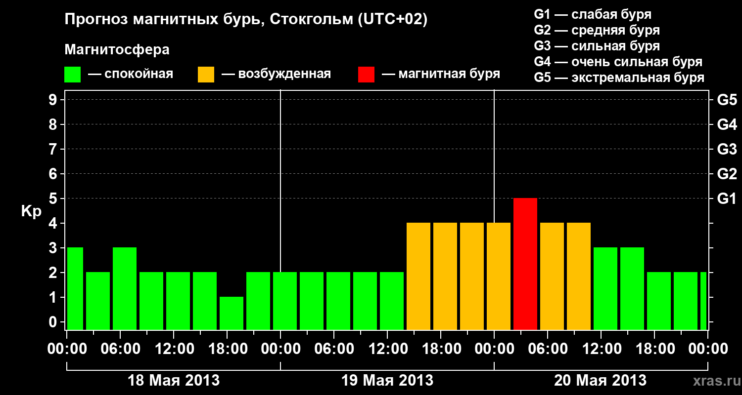 Прогноз магнитных бурь в Стокгольме — 18 мая 2013 года