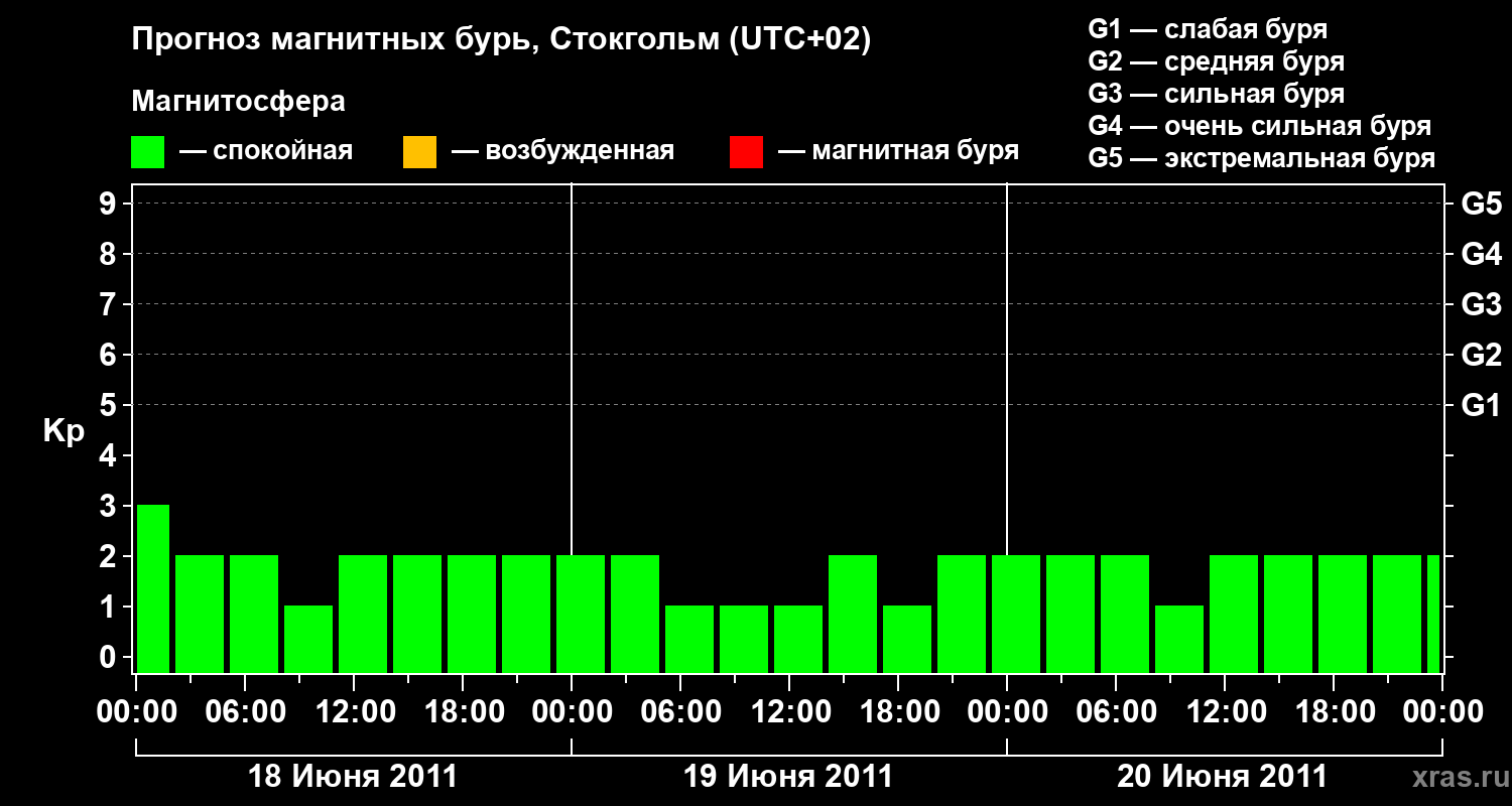 Прогноз магнитных бурь в Стокгольме — 18 июня 2011 года