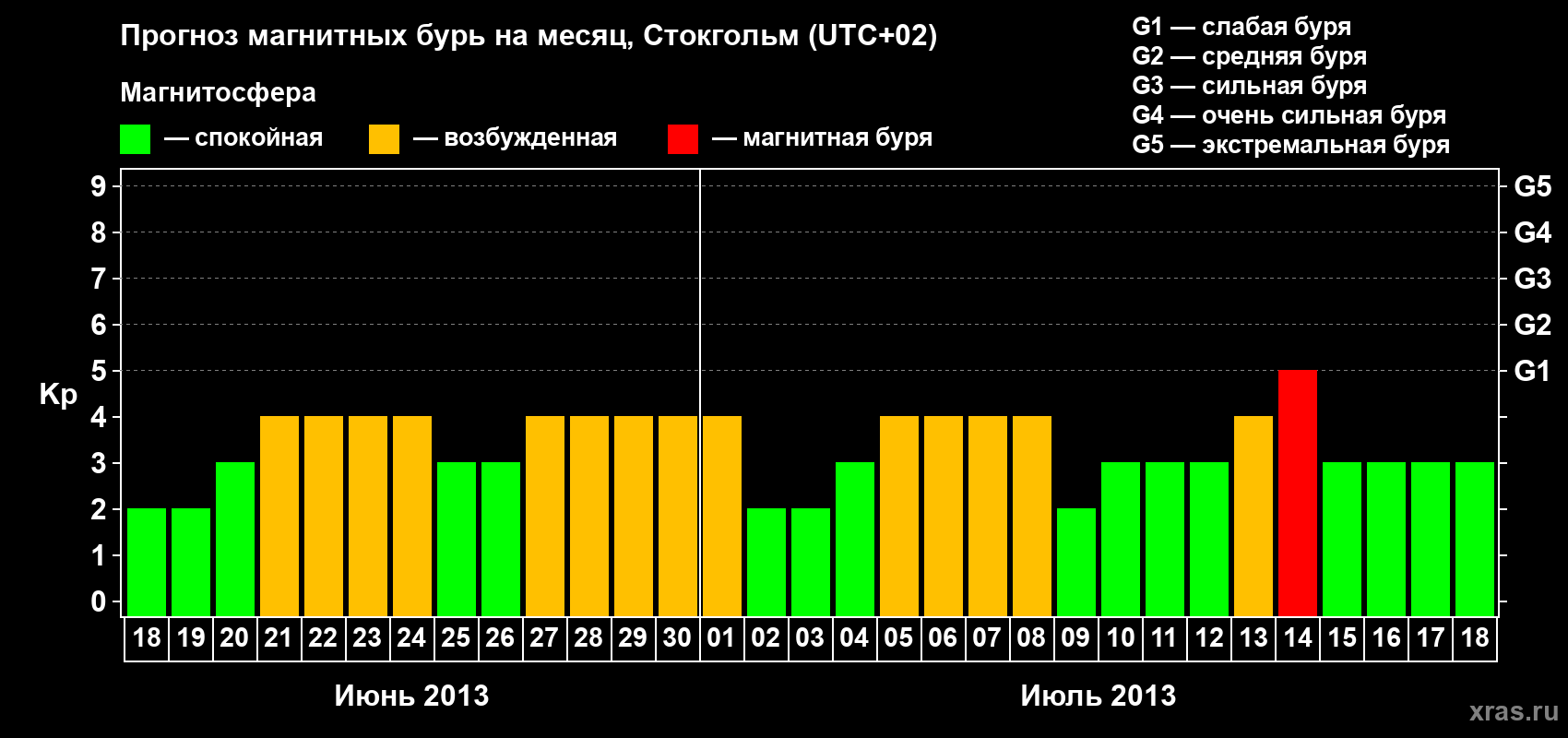 Прогноз магнитных бурь в Стокгольме — 18 июня 2013 года