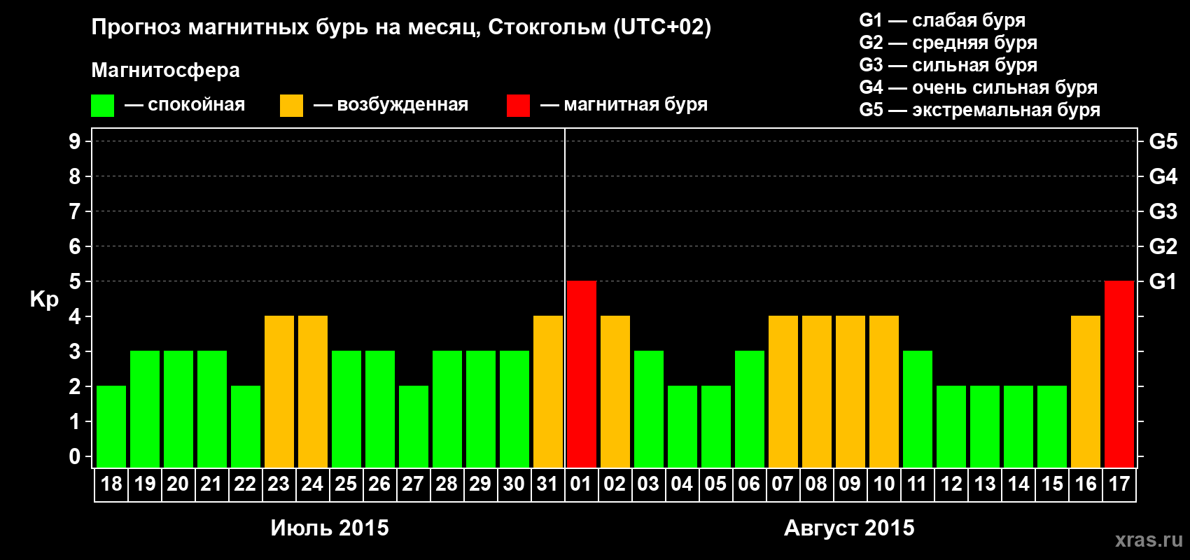 Прогноз магнитных бурь в Стокгольме — 18 июля 2015 года