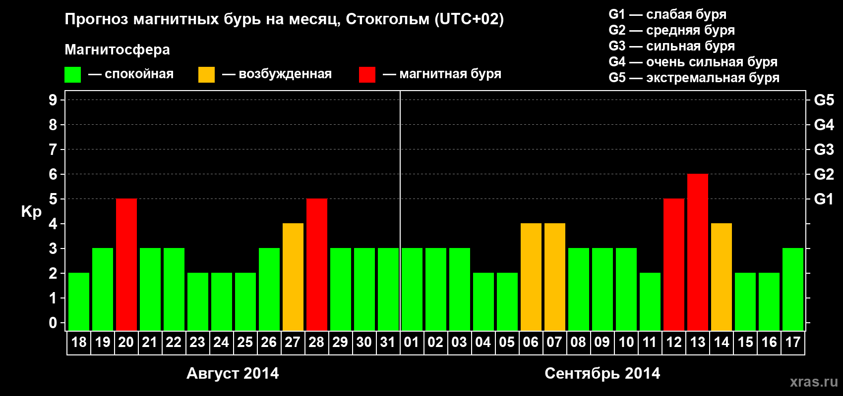 Прогноз магнитных бурь в Стокгольме — 18 августа 2014 года