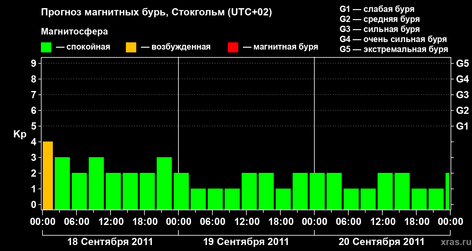 Прогноз магнитных бурь в Стокгольме — 18 сентября 2011 года
