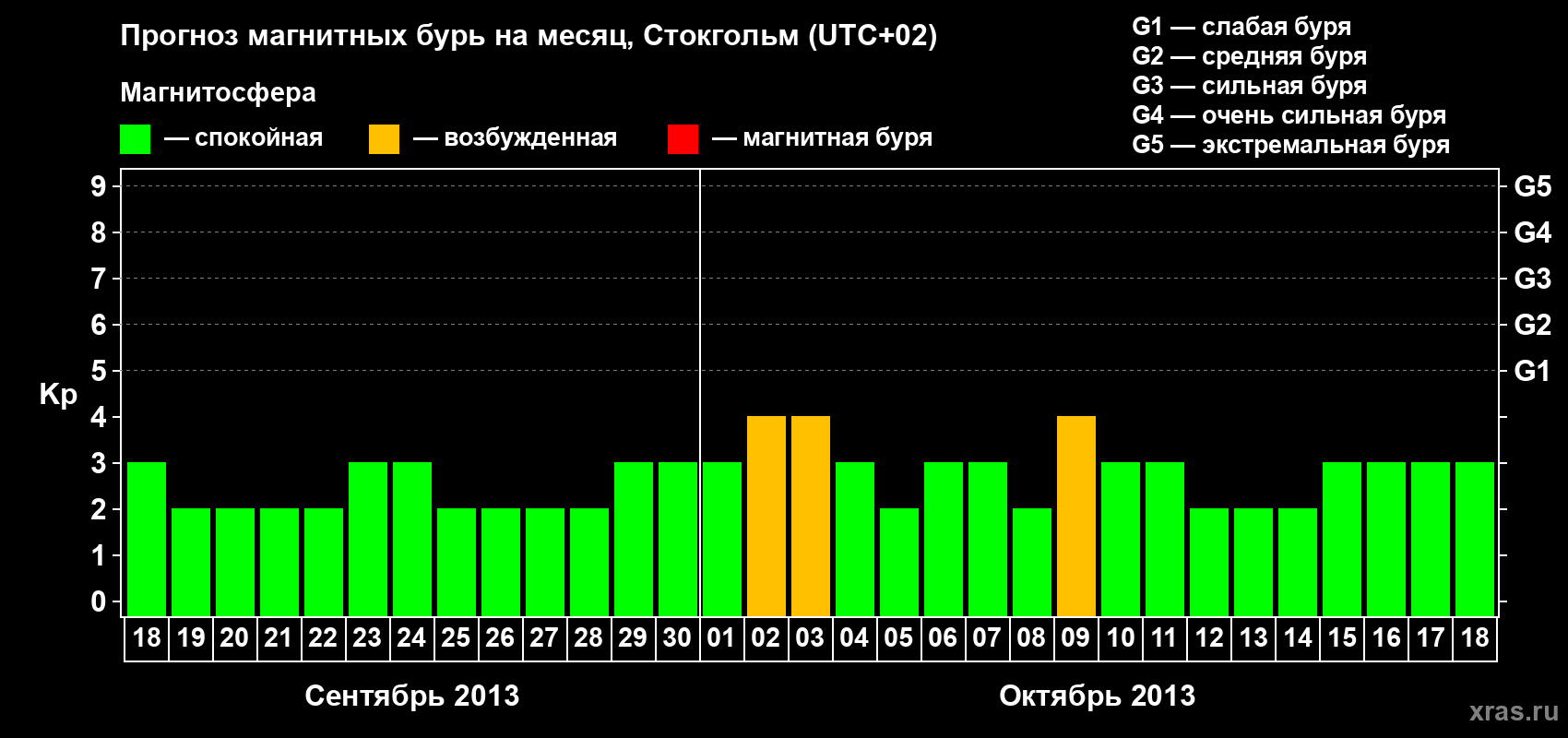 Прогноз магнитных бурь в Стокгольме — 18 сентября 2013 года