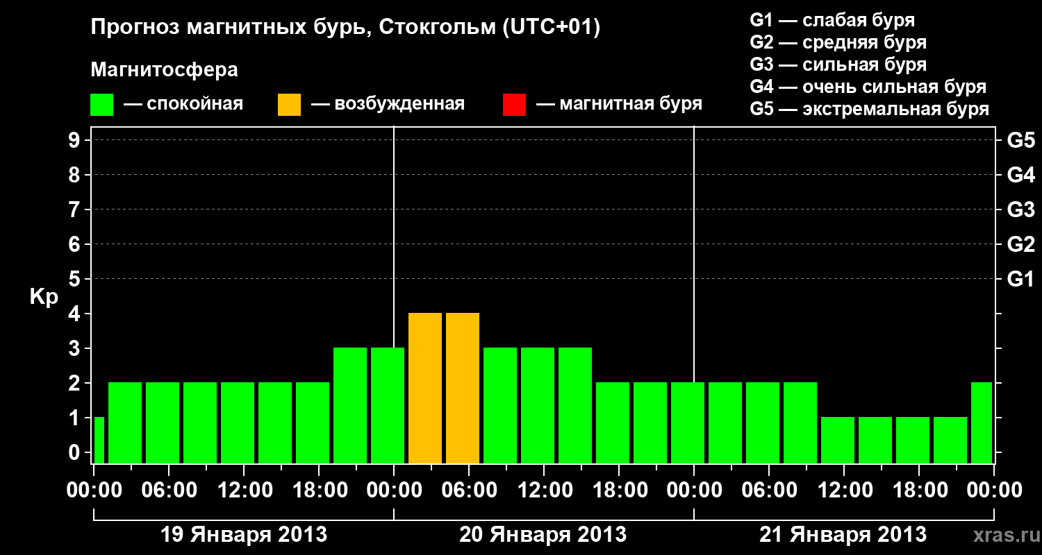 Прогноз магнитных бурь в Стокгольме — 19 января 2013 года