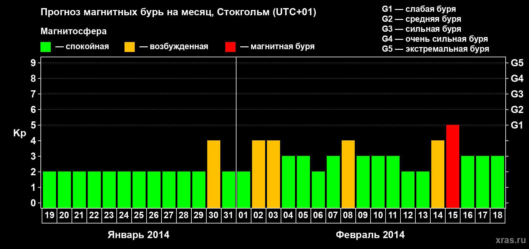 Прогноз магнитных бурь в Стокгольме — 19 января 2014 года