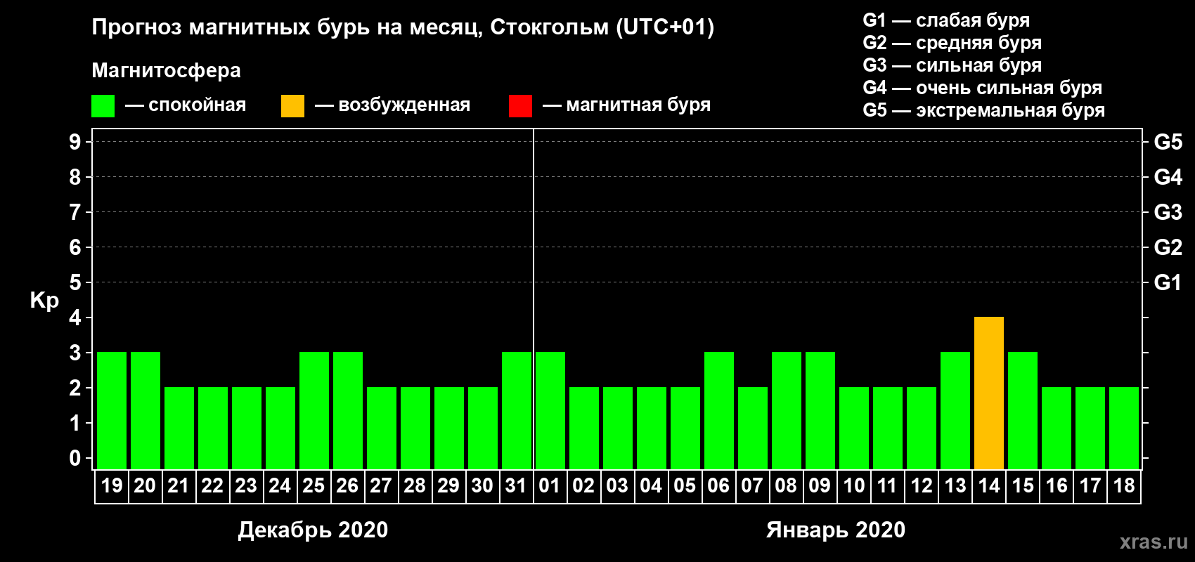 Прогноз магнитных бурь в Стокгольме — 19 декабря 2019 года