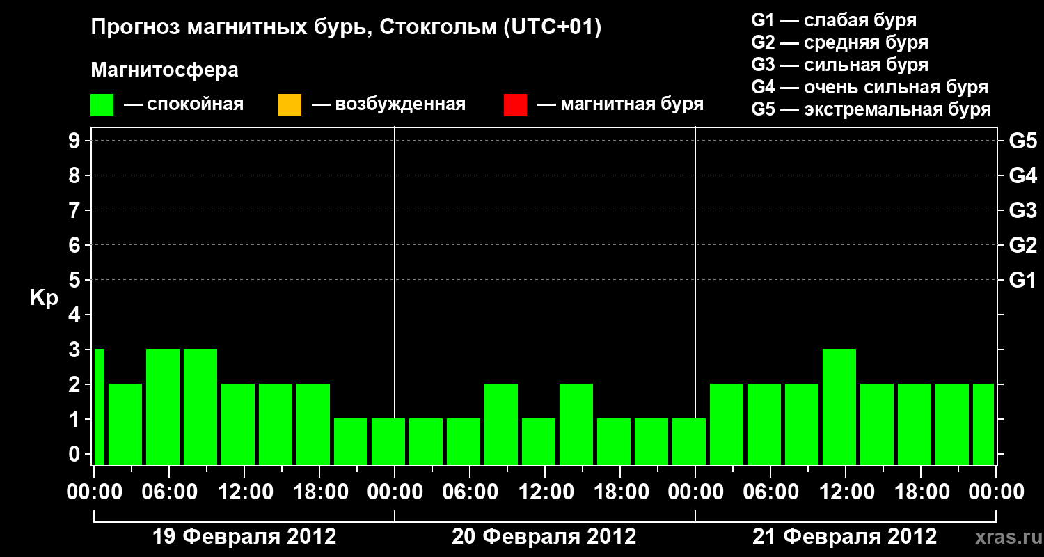 Прогноз магнитных бурь в Стокгольме — 19 февраля 2012 года