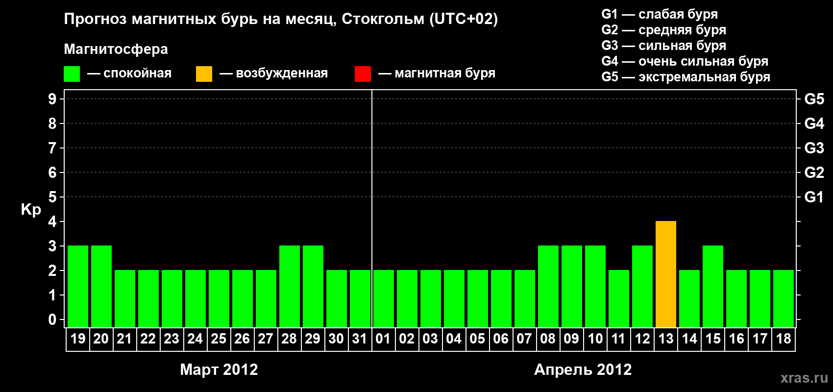 Прогноз магнитных бурь в Стокгольме — 19 марта 2012 года