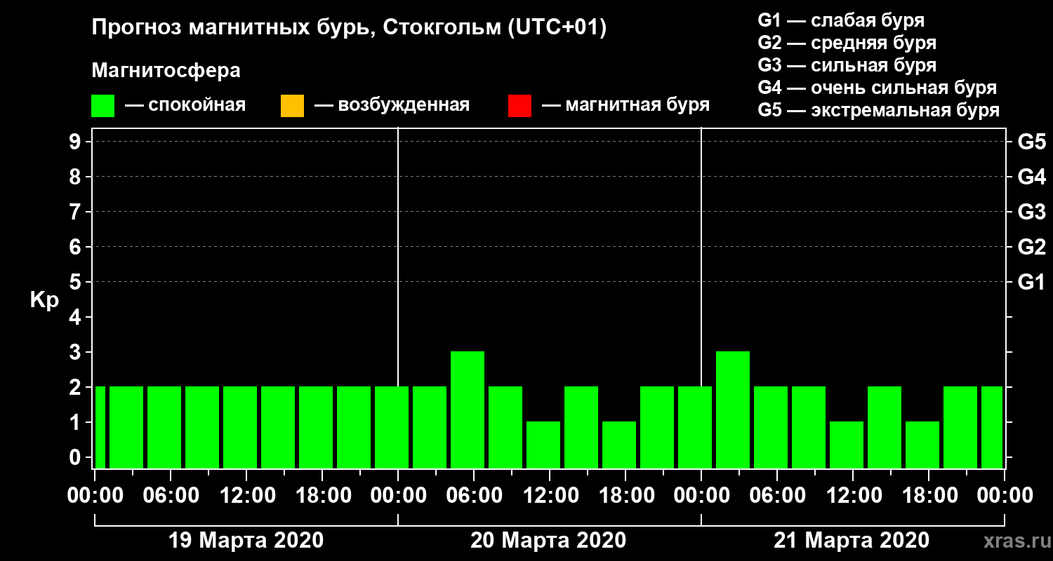 Прогноз магнитных бурь в Стокгольме — 19 марта 2020 года