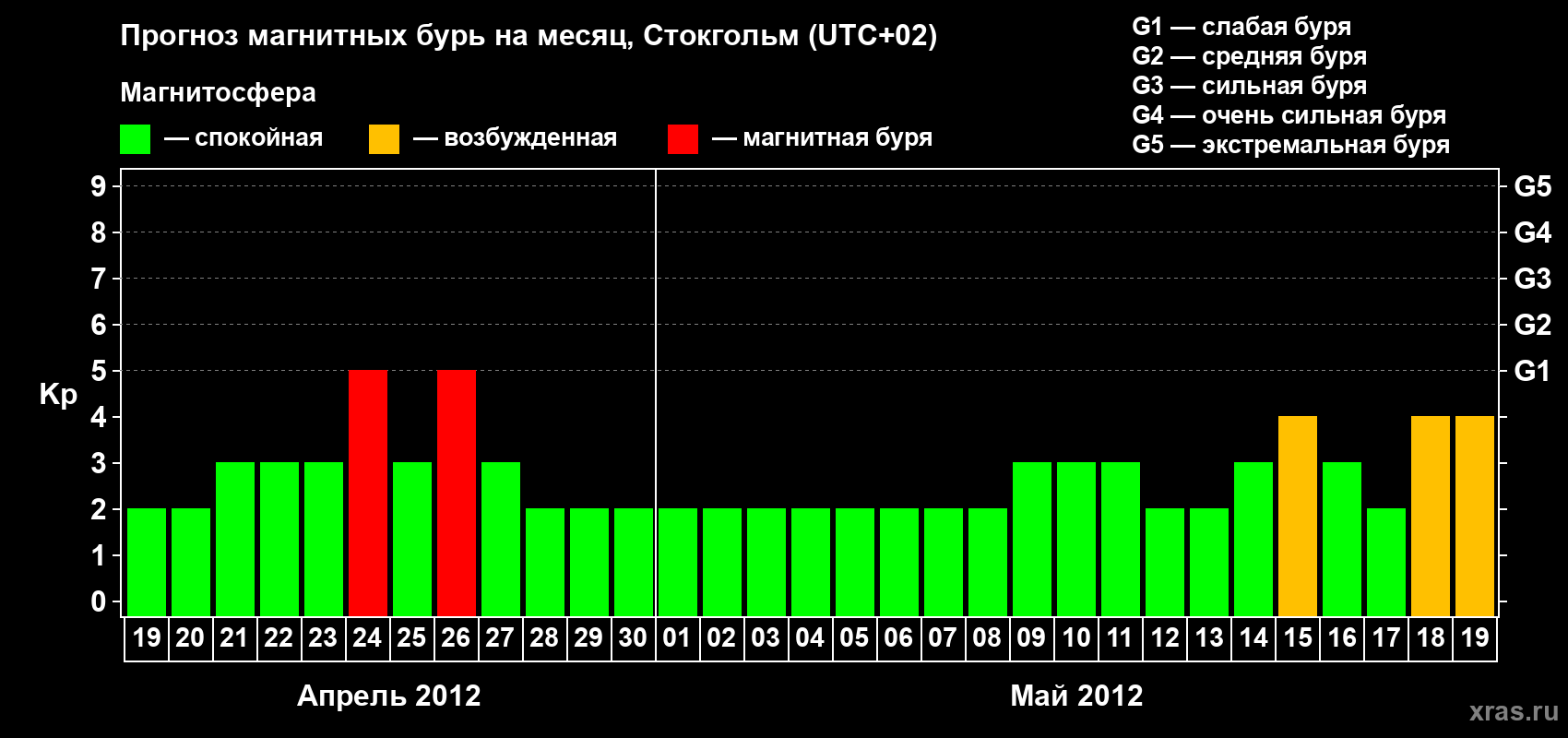 Прогноз магнитных бурь в Стокгольме — 19 апреля 2012 года