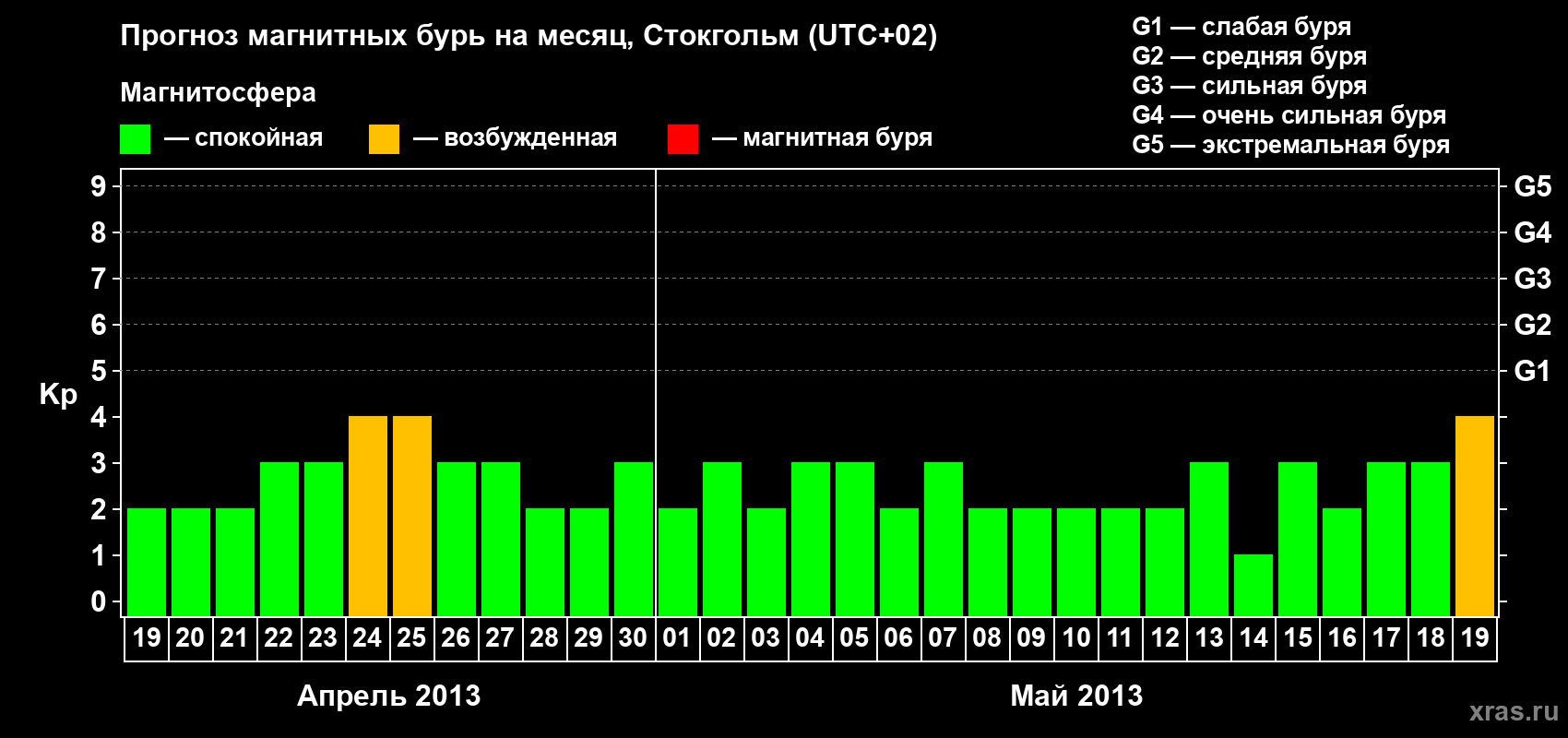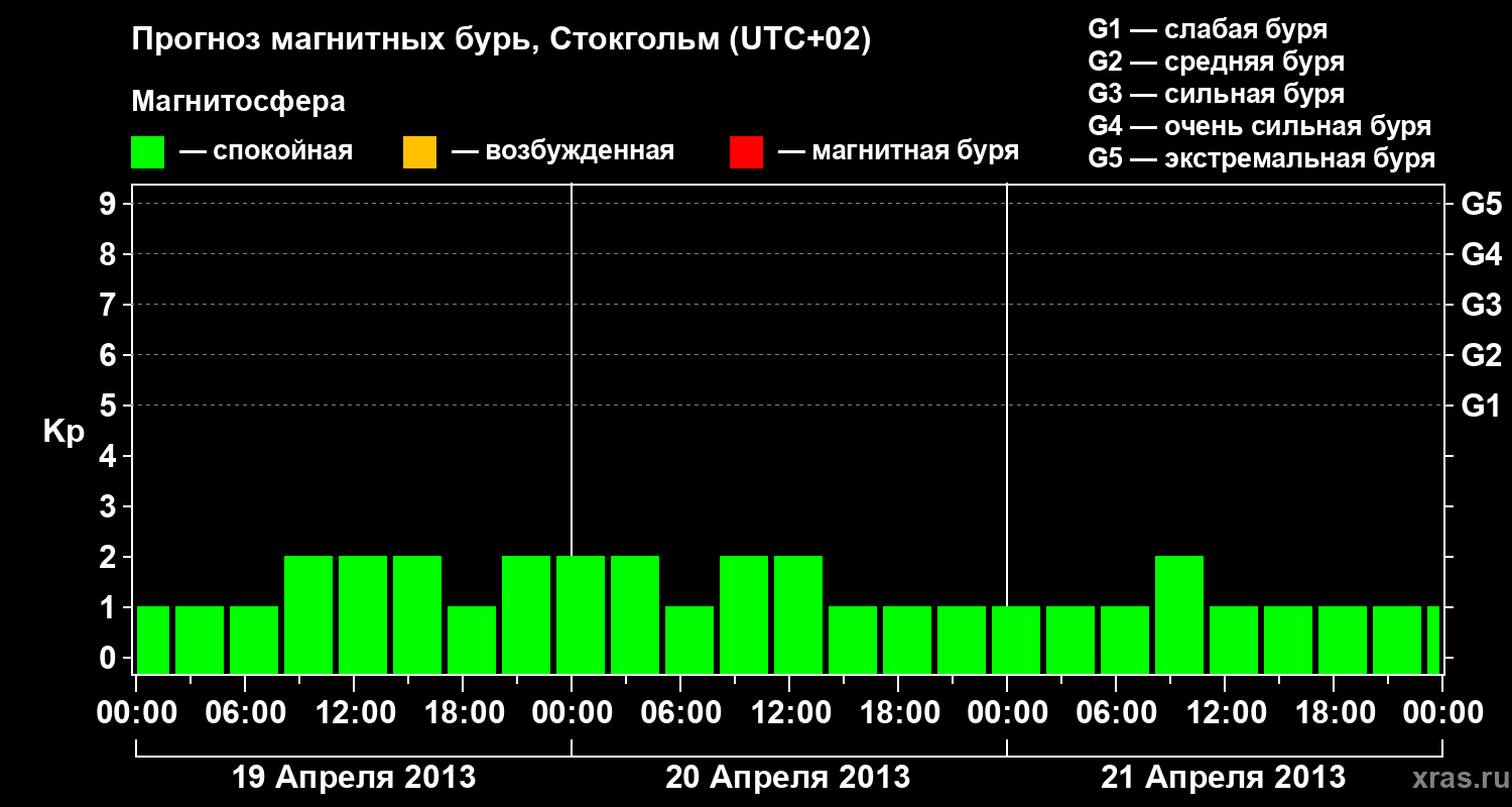 Прогноз магнитных бурь в Стокгольме — 19 апреля 2013 года
