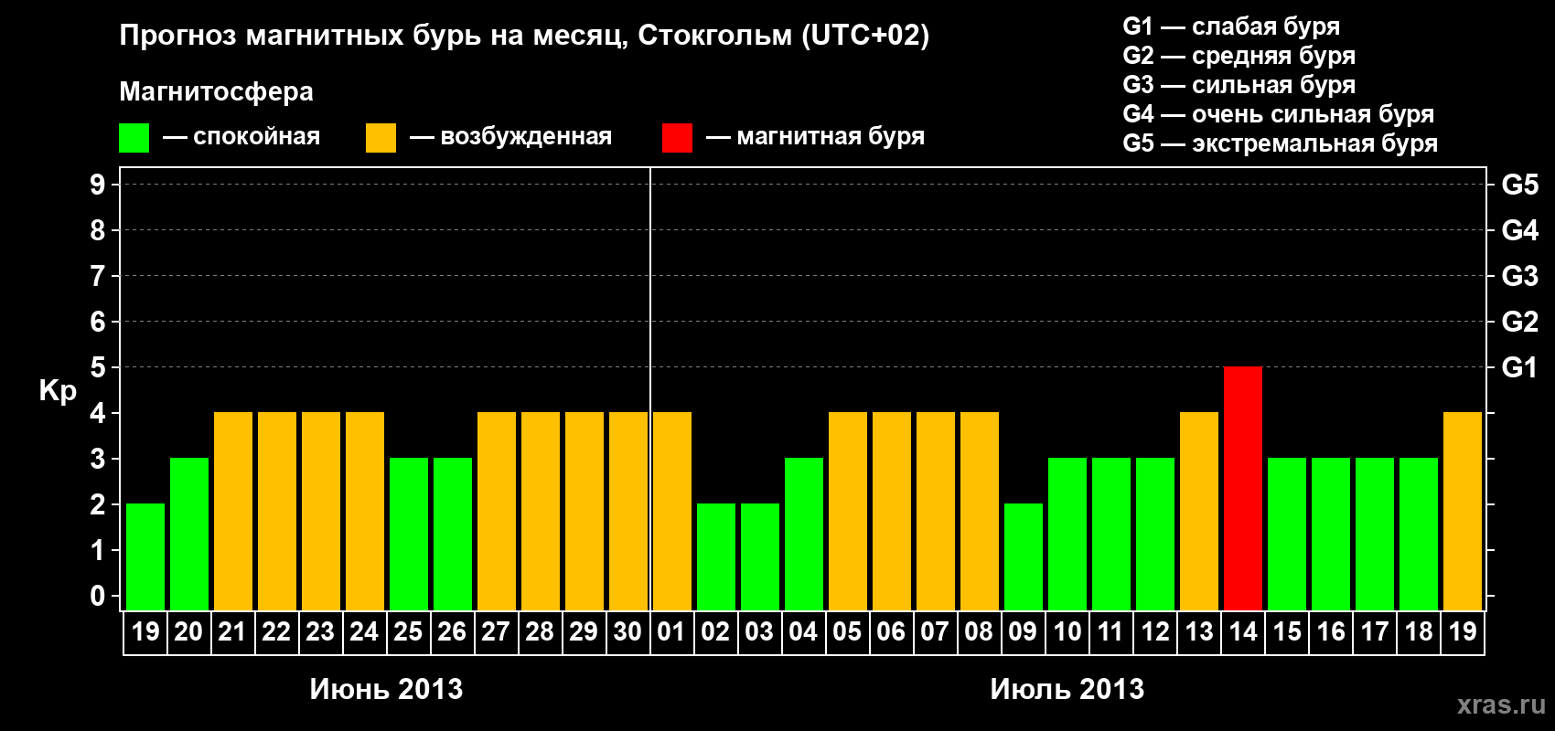 Прогноз магнитных бурь в Стокгольме — 19 июня 2013 года