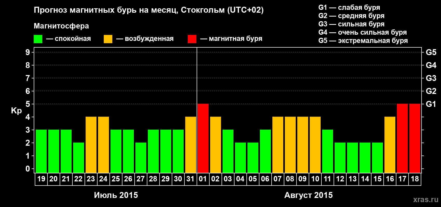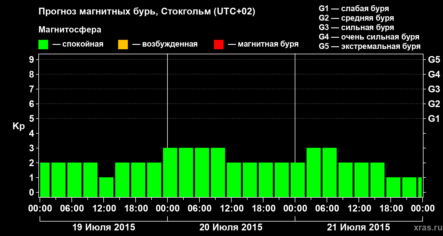 Прогноз магнитных бурь в Стокгольме — 19 июля 2015 года