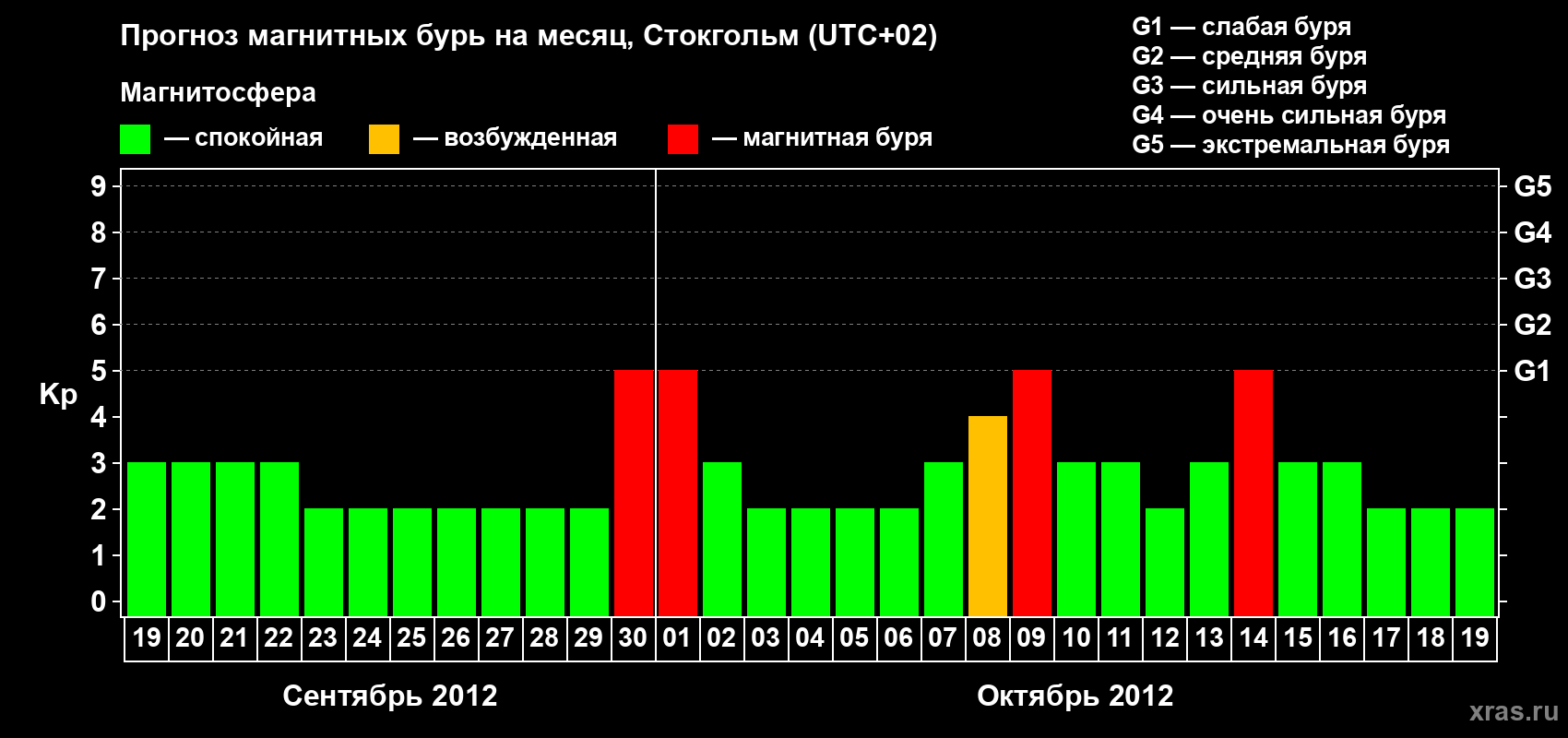Прогноз магнитных бурь в Стокгольме — 19 сентября 2012 года