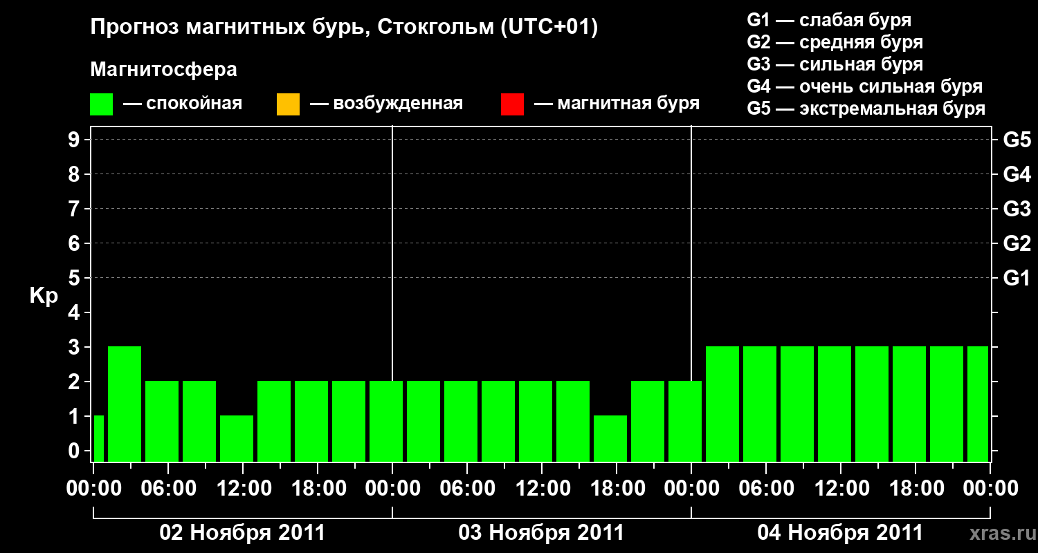 Прогноз магнитных бурь в Стокгольме — 2 ноября 2011 года