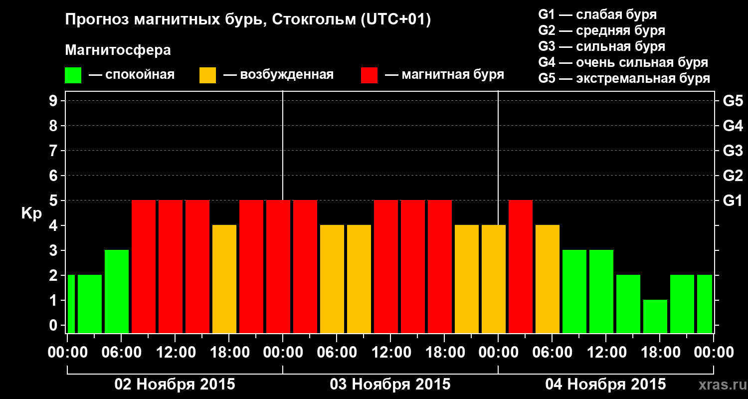 Прогноз магнитных бурь в Стокгольме — 2 ноября 2015 года