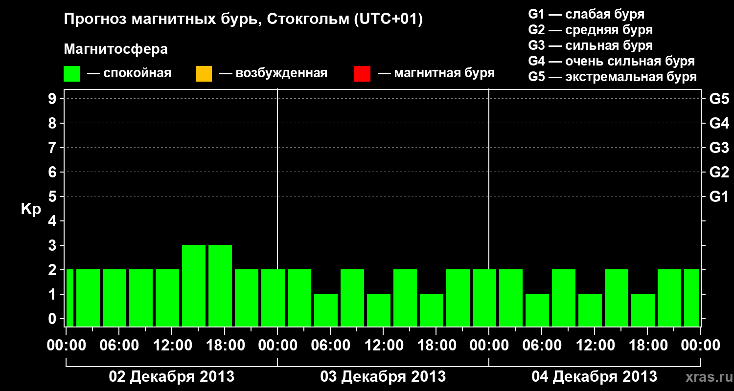 Прогноз магнитных бурь в Стокгольме — 2 декабря 2013 года