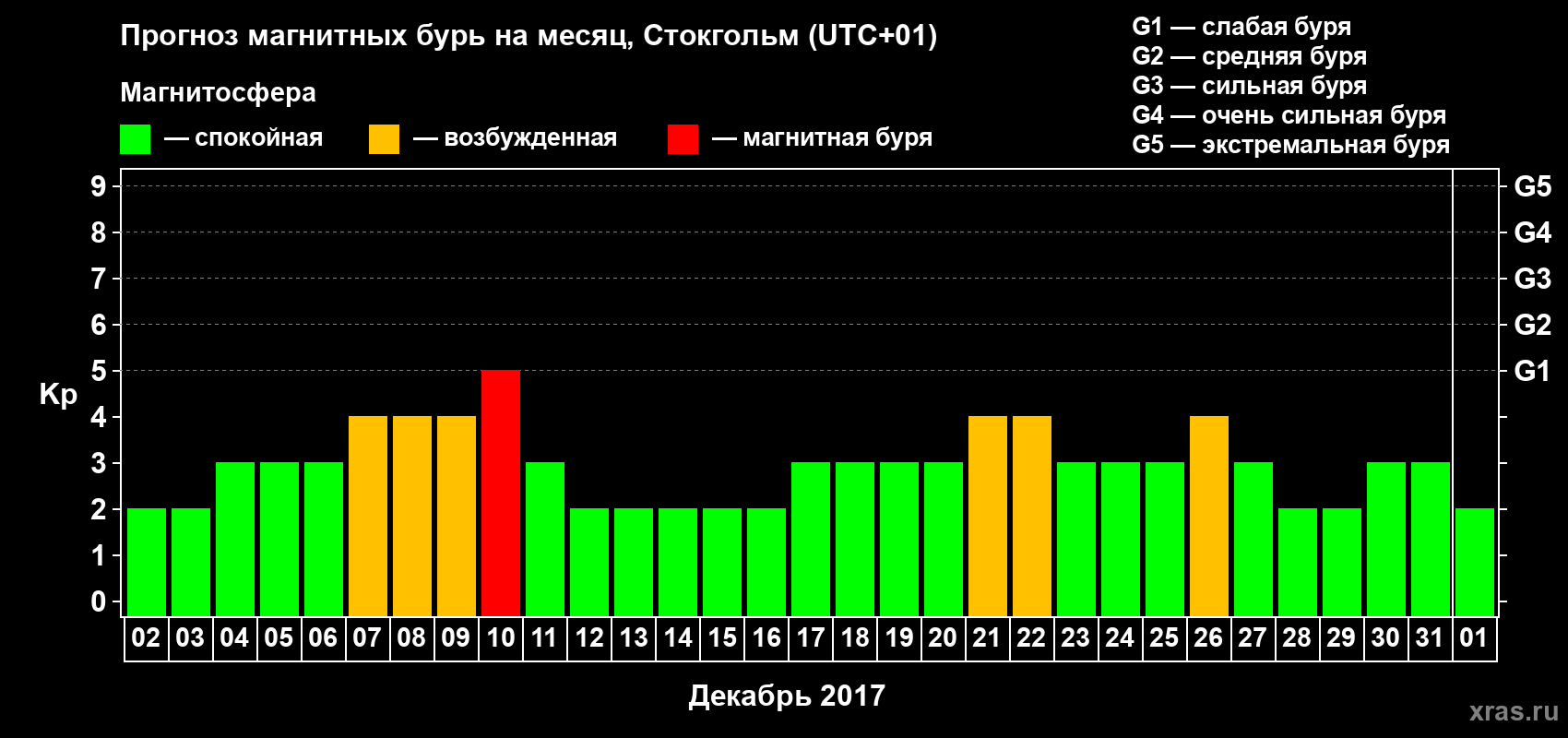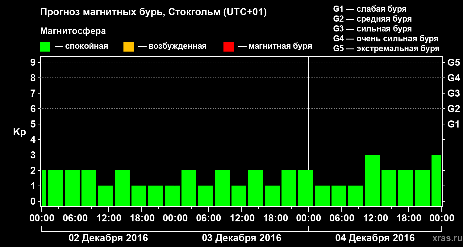 Прогноз магнитных бурь в Стокгольме — 2 декабря 2016 года