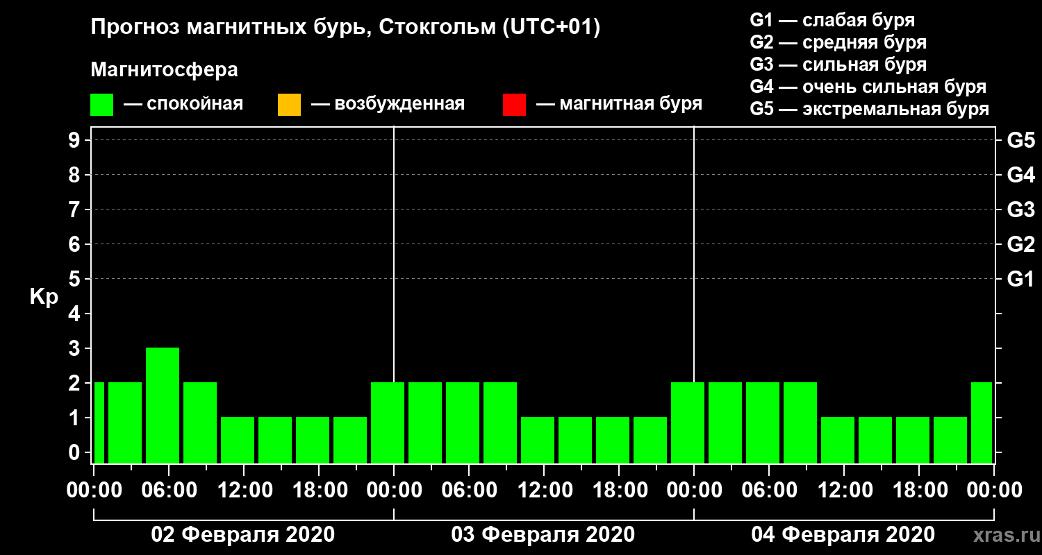 Прогноз магнитных бурь в Стокгольме — 2 февраля 2020 года