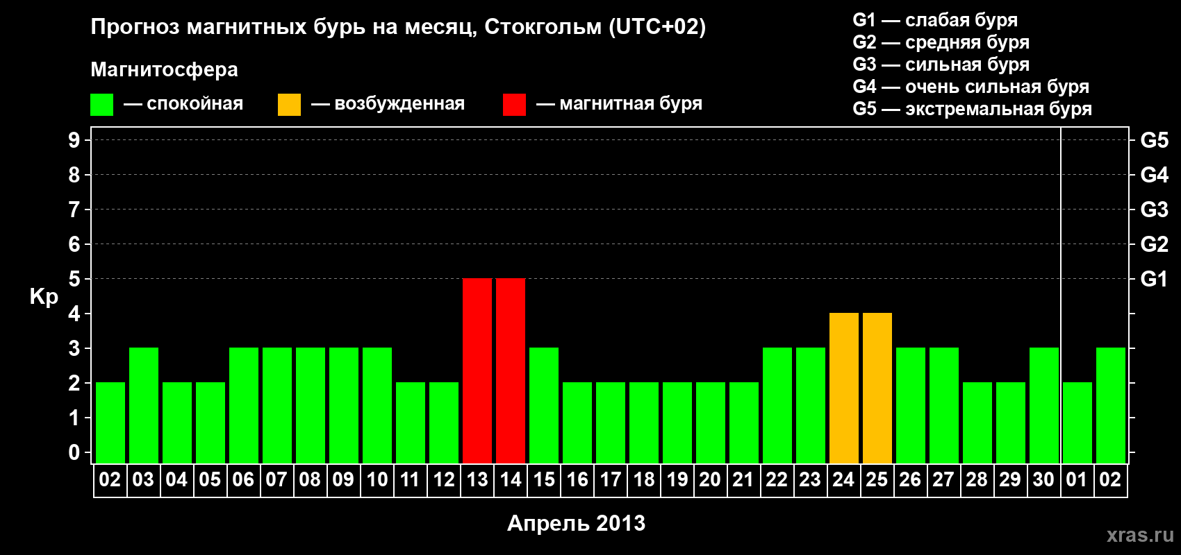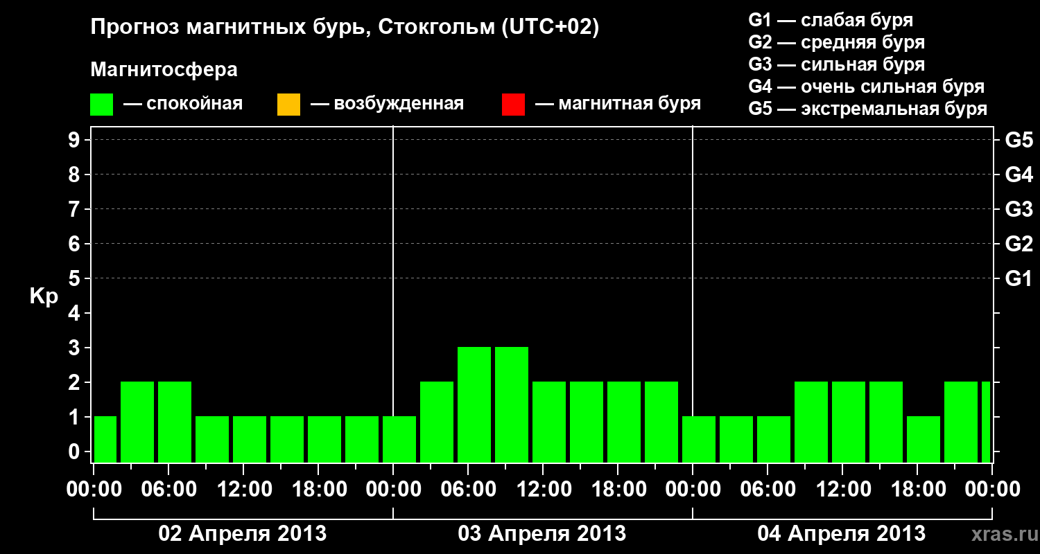 Прогноз магнитных бурь в Стокгольме — 2 апреля 2013 года