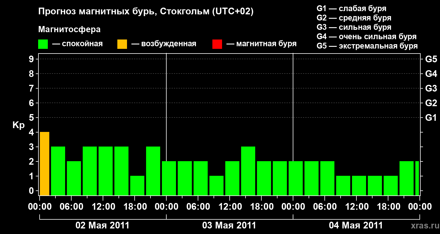 Прогноз магнитных бурь в Стокгольме — 2 мая 2011 года