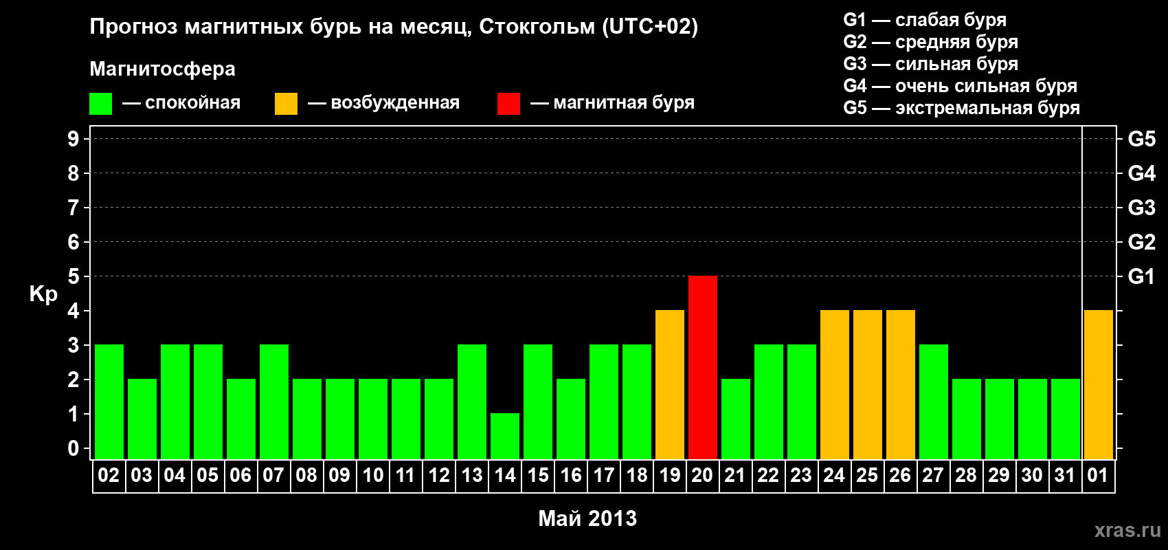 Прогноз магнитных бурь в Стокгольме — 2 мая 2013 года