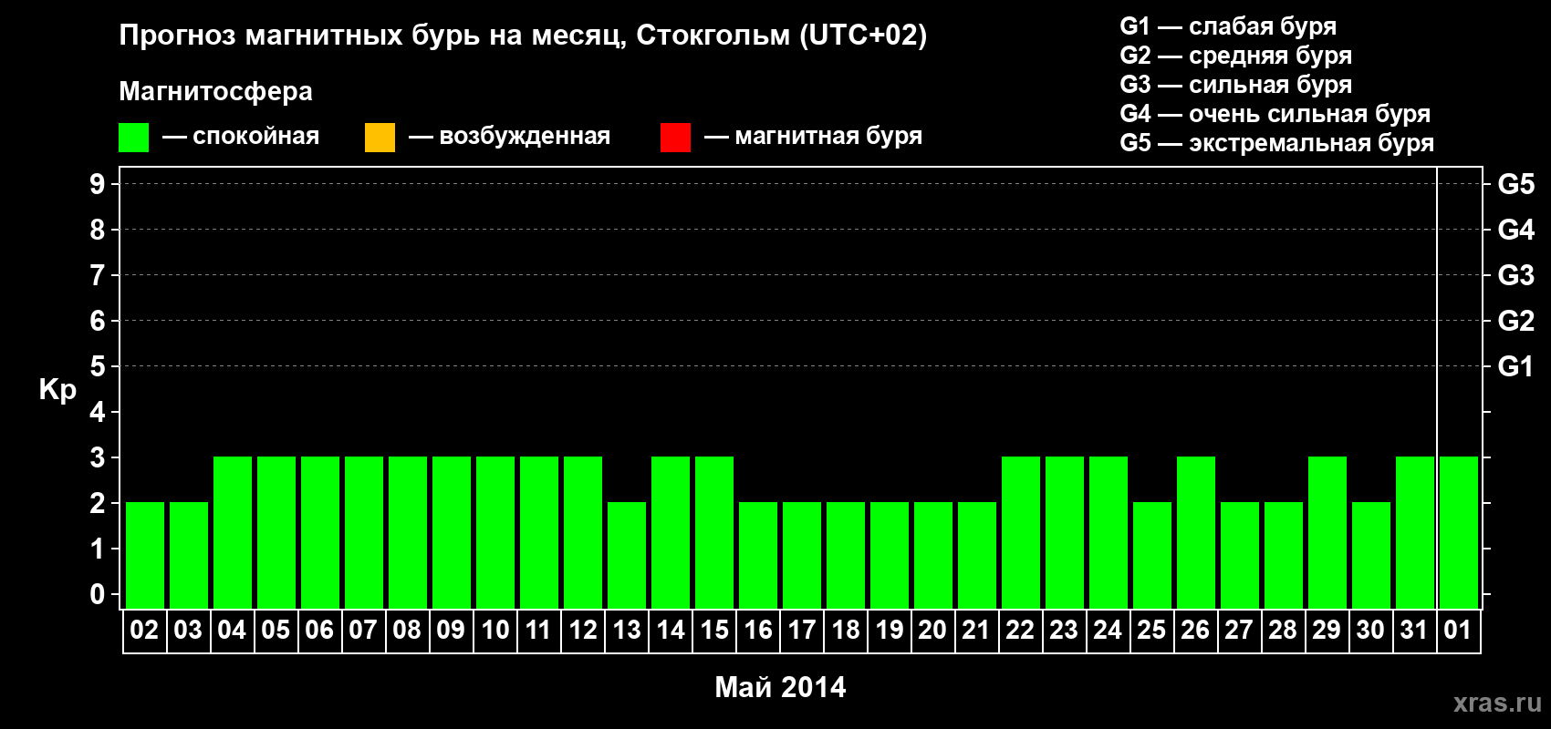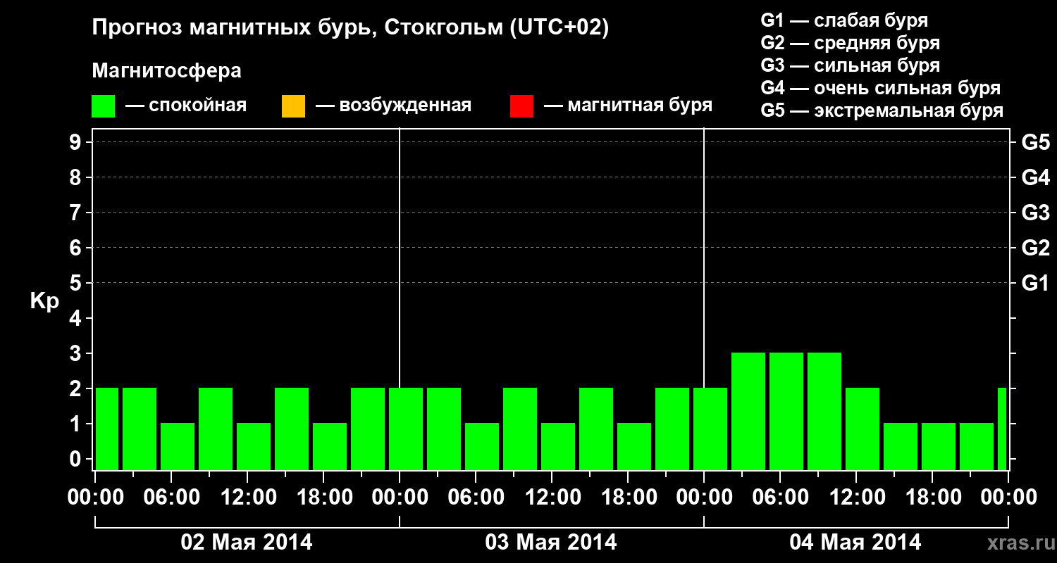Прогноз магнитных бурь в Стокгольме — 2 мая 2014 года