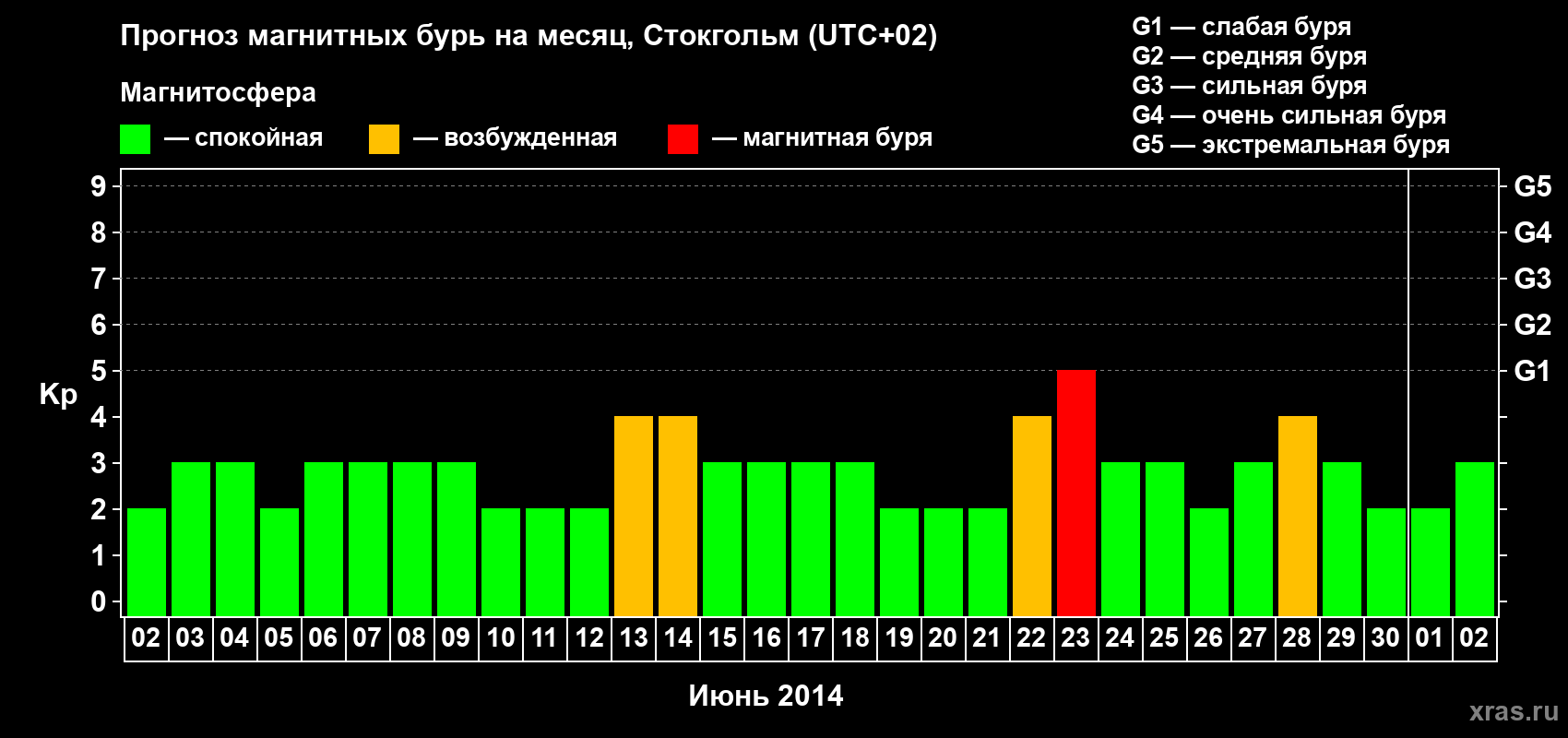 Прогноз магнитных бурь в Стокгольме — 2 июня 2014 года