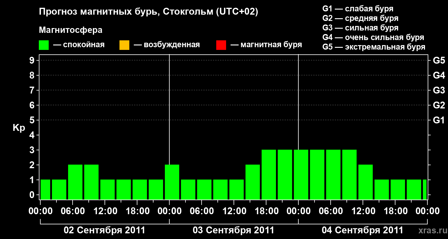 Прогноз магнитных бурь в Стокгольме — 2 сентября 2011 года