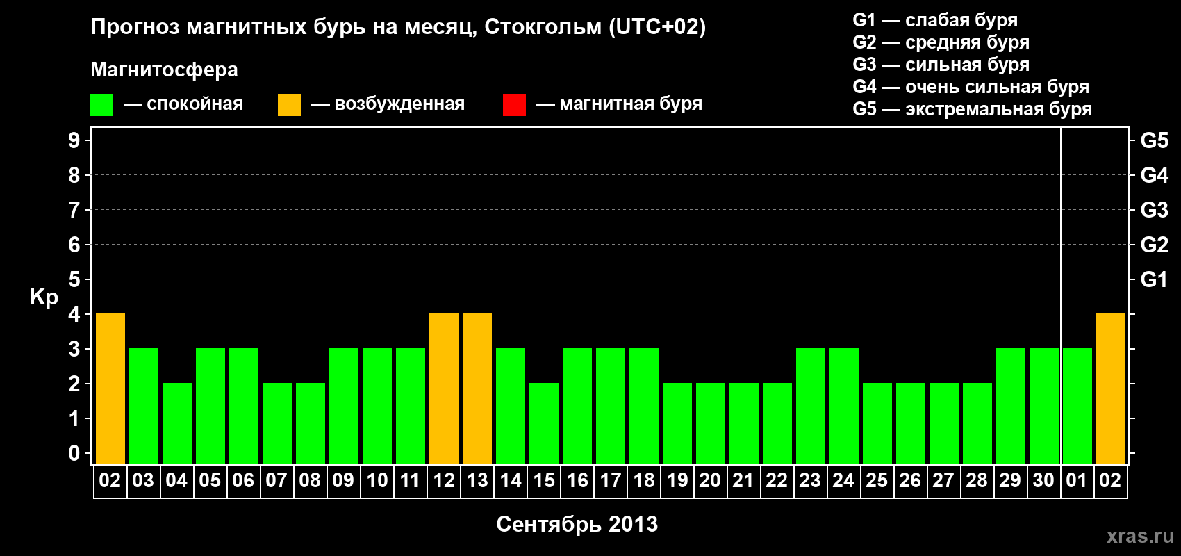 Прогноз магнитных бурь в Стокгольме — 2 сентября 2013 года