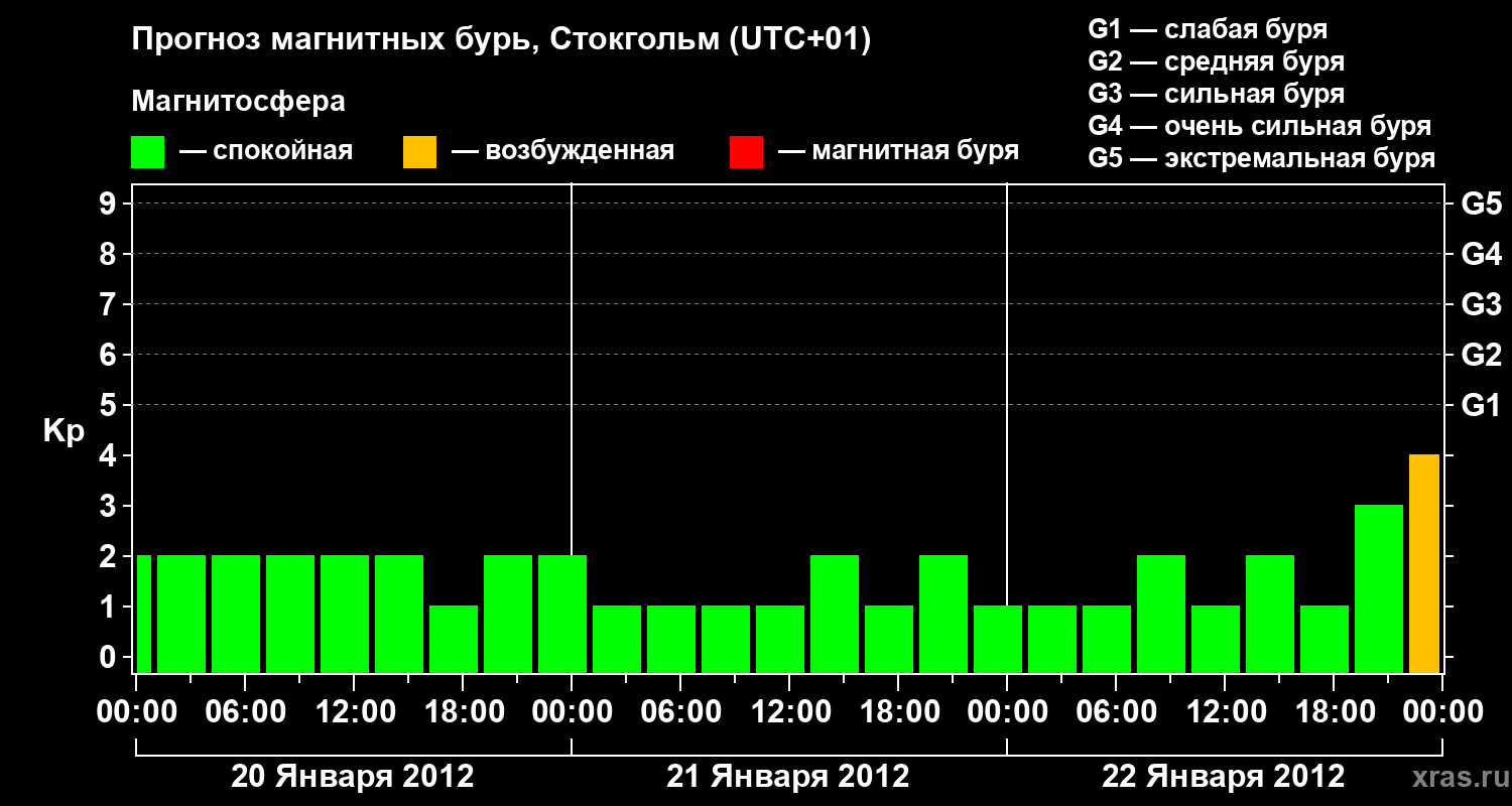 Прогноз магнитных бурь в Стокгольме — 20 января 2012 года
