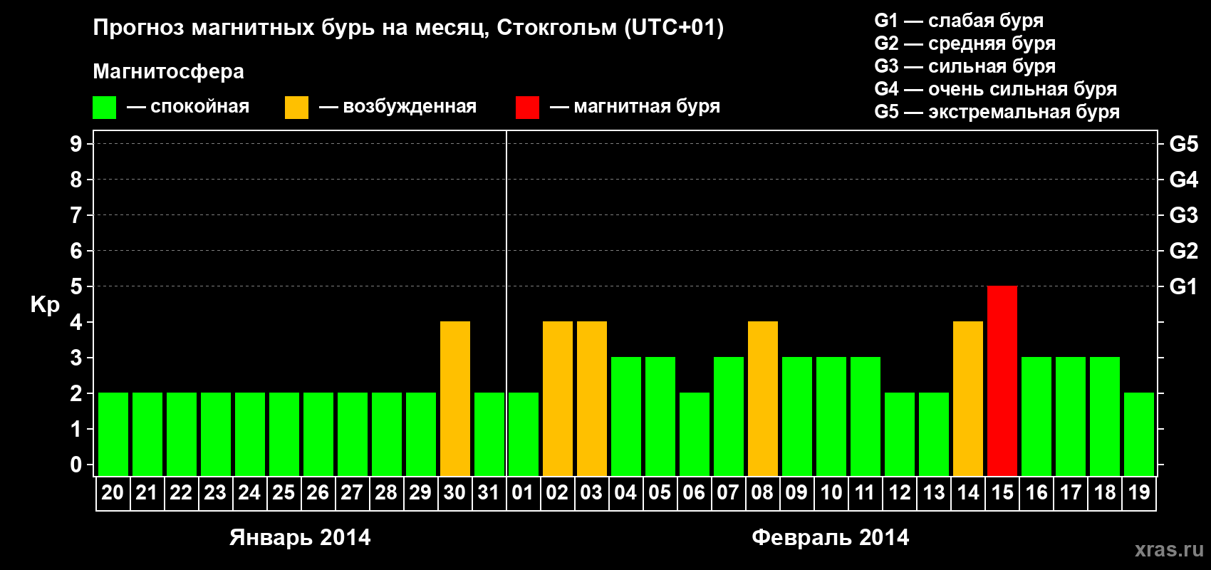 Прогноз магнитных бурь в Стокгольме — 20 января 2014 года