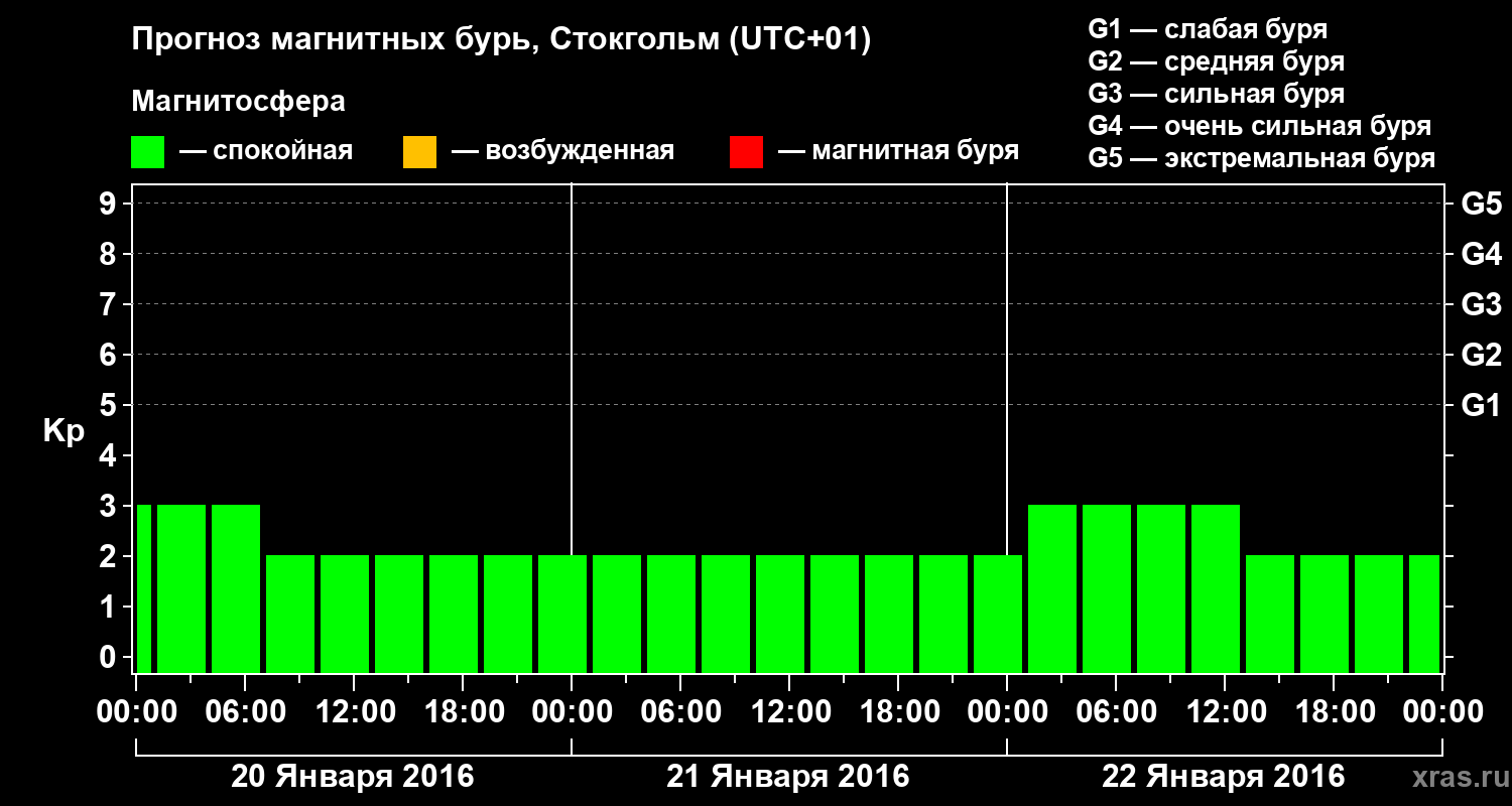 Прогноз магнитных бурь в Стокгольме — 20 января 2016 года