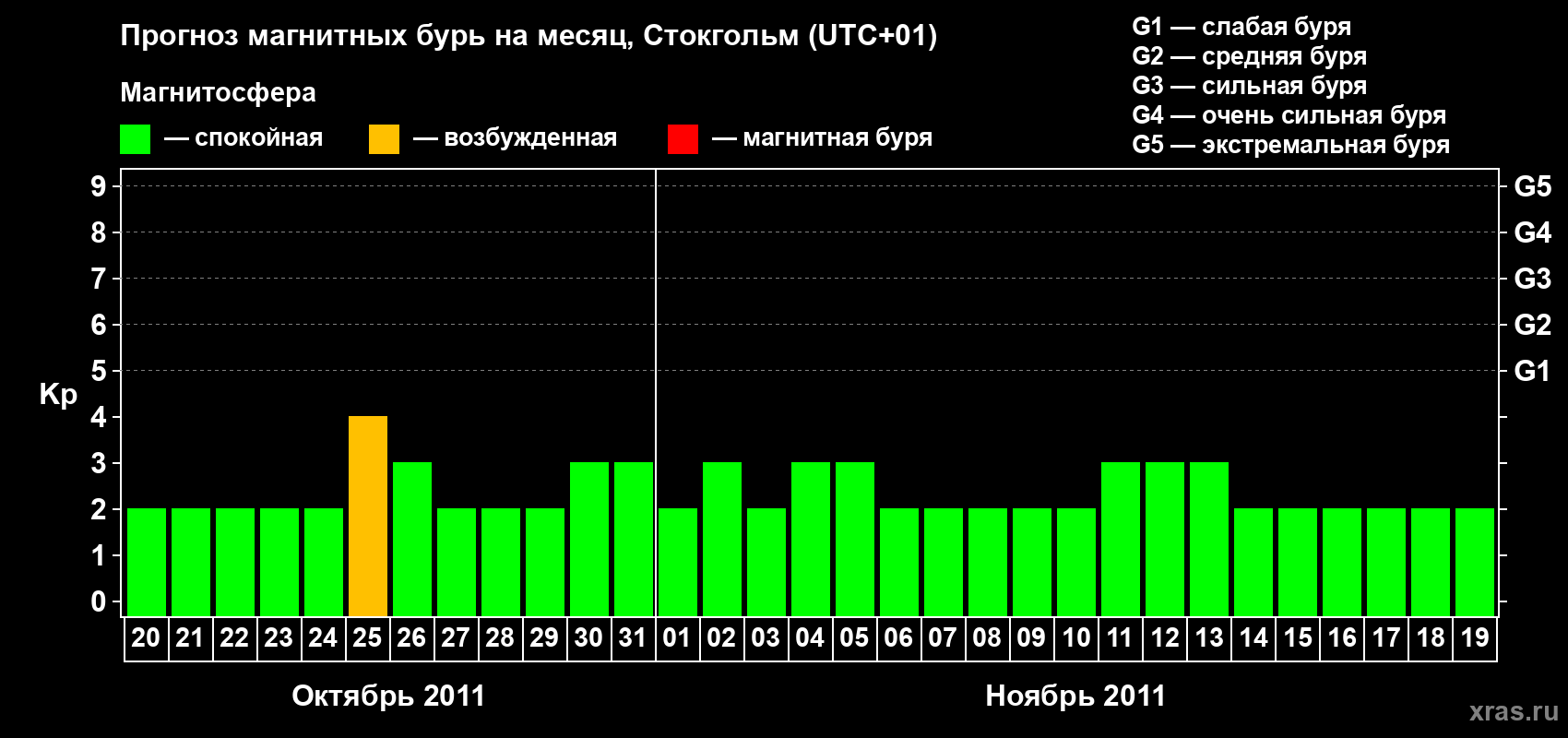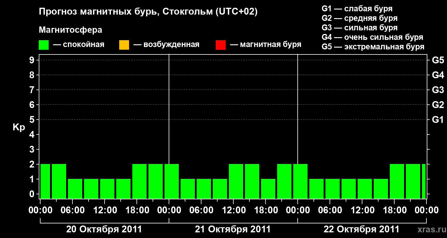 Прогноз магнитных бурь в Стокгольме — 20 октября 2011 года
