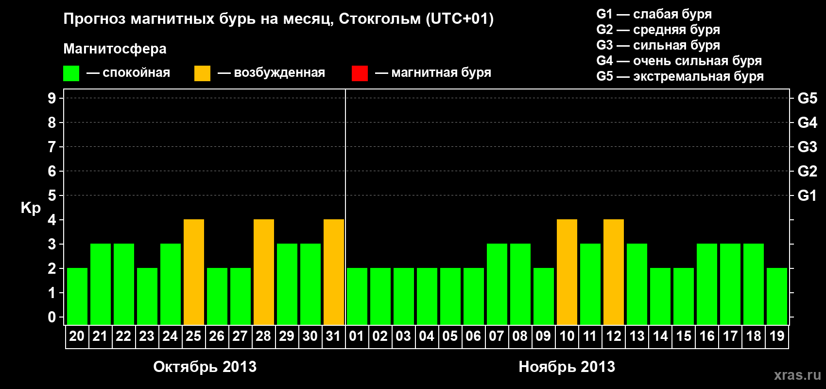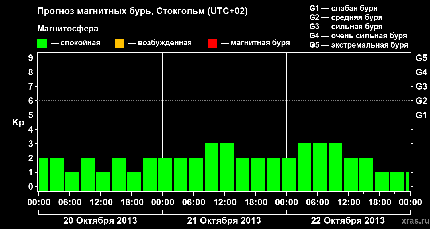 Прогноз магнитных бурь в Стокгольме — 20 октября 2013 года